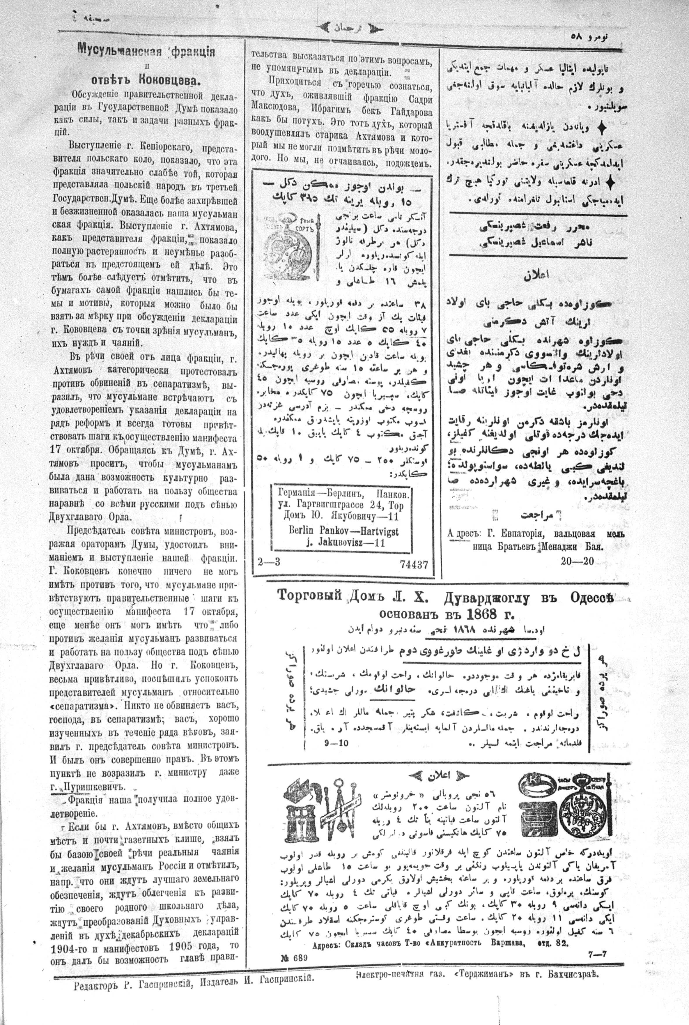 Turkish-Russian newspaper published in Crimea by İsmail Gaspıralı.