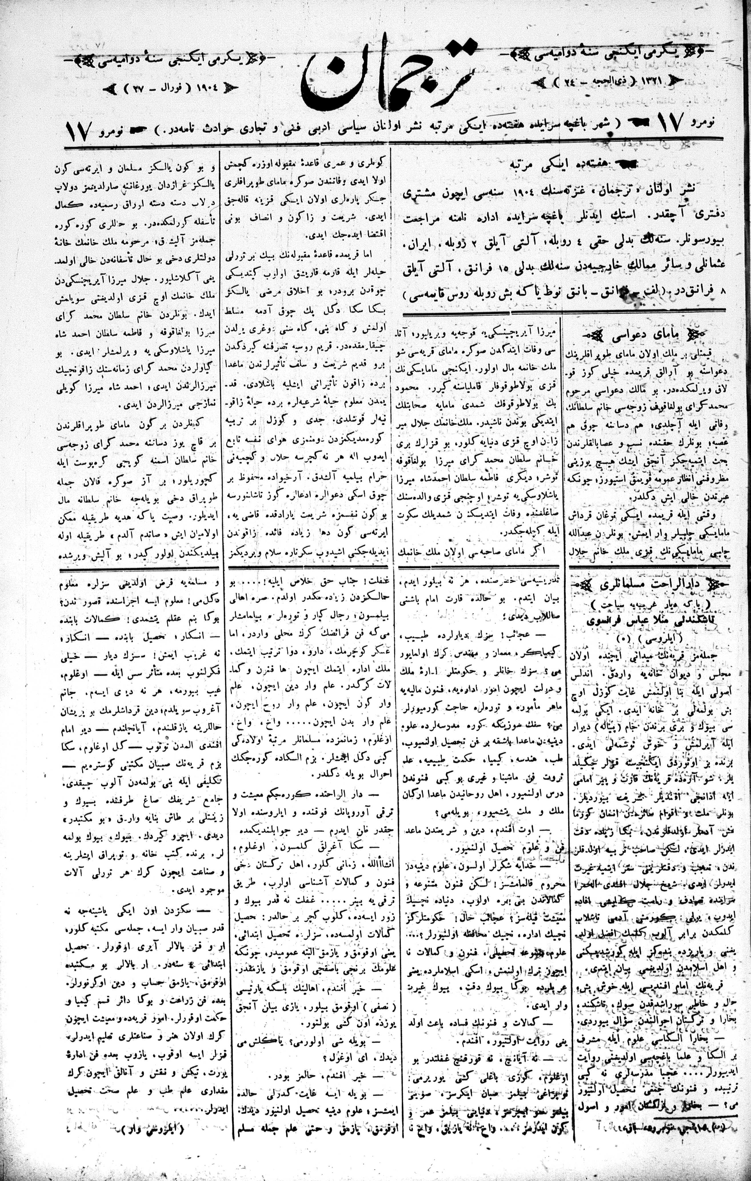 Different spellings of Tercüman: Terdzhiman, Terjuman, Perevodçik and Terjiman.
