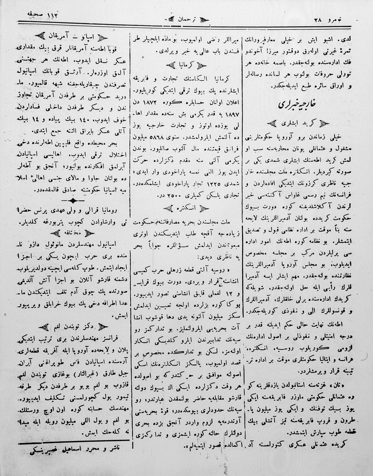The name of the newspaper changed to Tercüman-ı Ahval-i Zaman in 1905. In 1909, it started to be published under its first name, Tercüman.