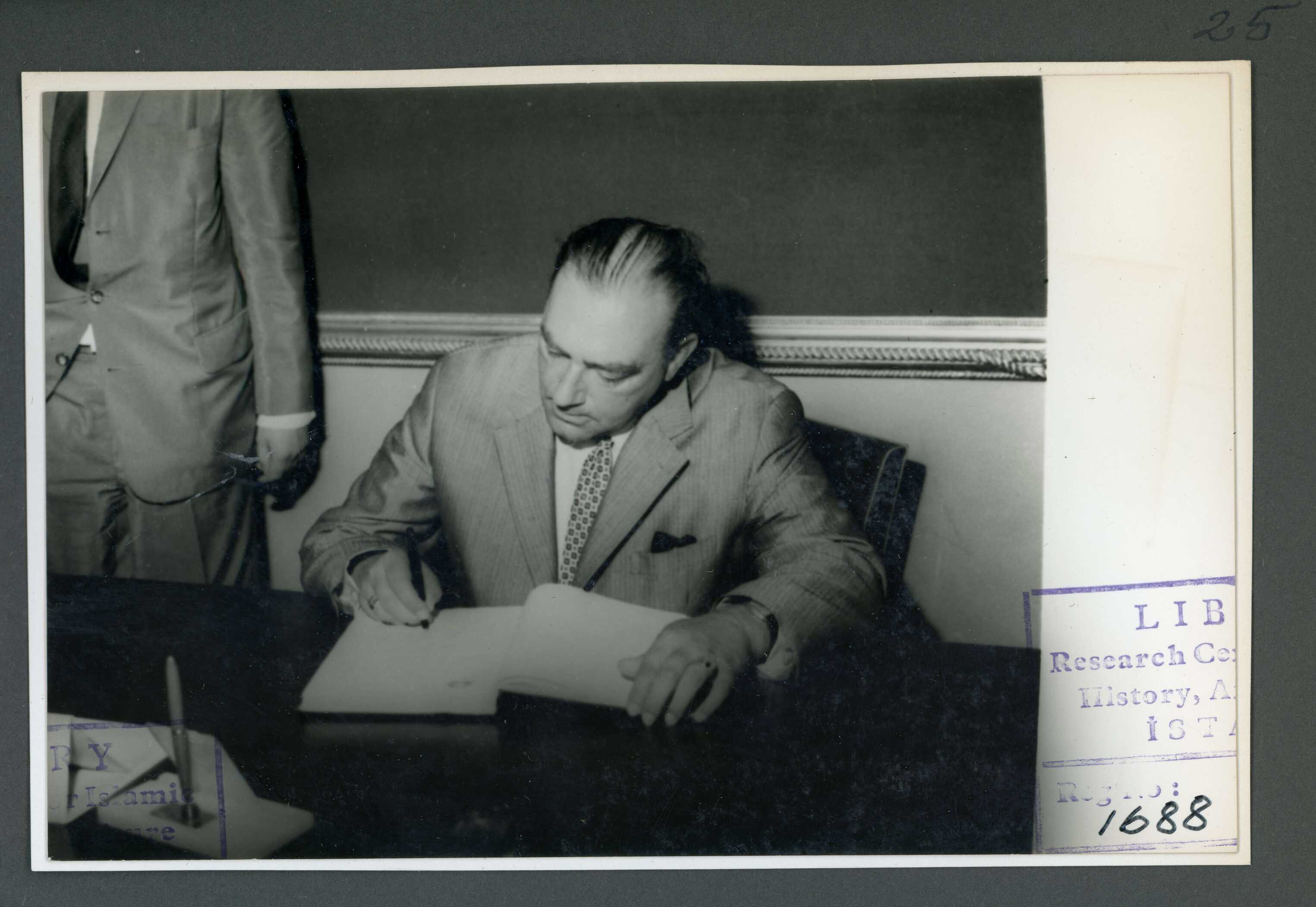 Federal Almanya Büyükelçisi Groepper'ın Askeri Müze'yi ziyaretinde heyetten biri tarafından şeref defteri imzalanırken