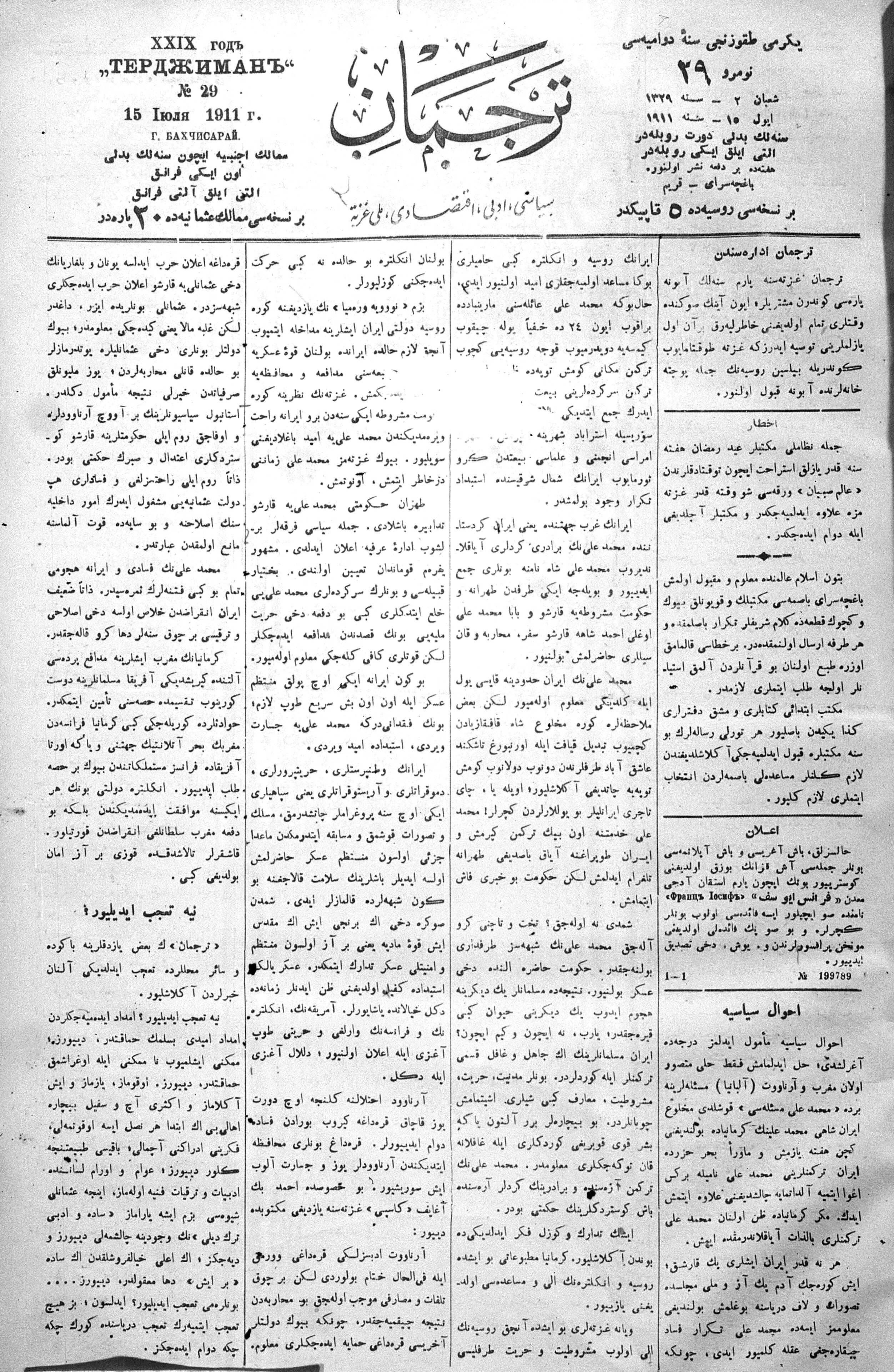 Tercüman, 15 July 1911 Year 29 No 29