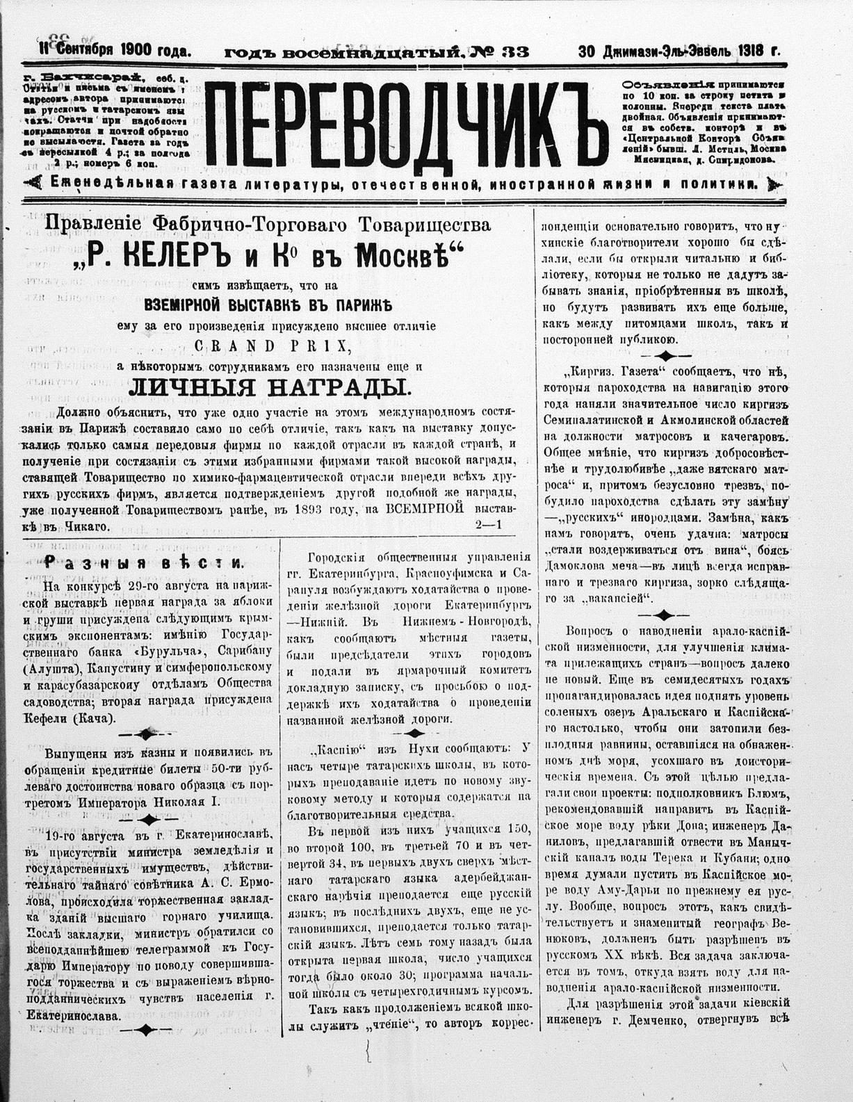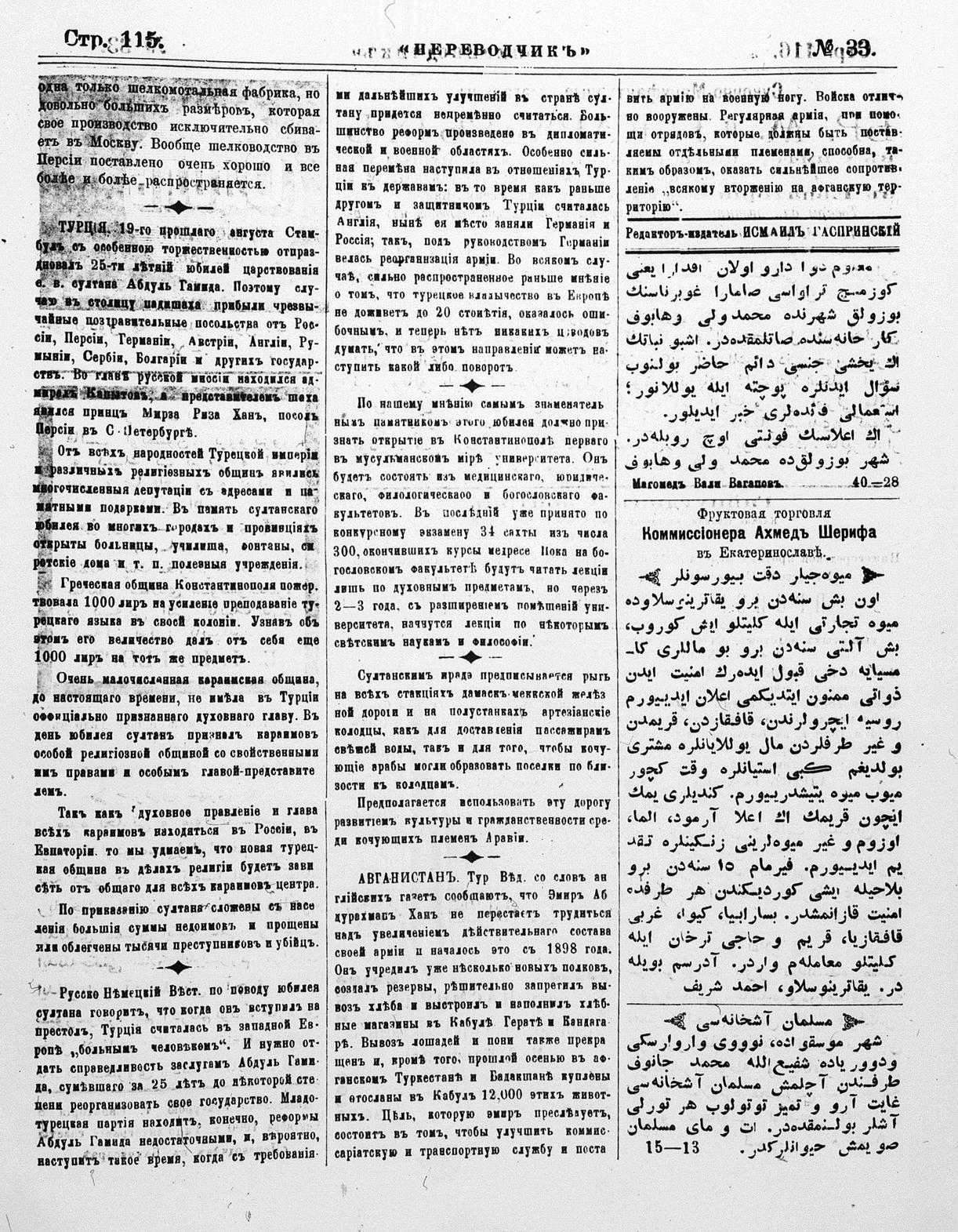 Turkish-Russian newspaper published in Crimea by İsmail Gaspıralı.