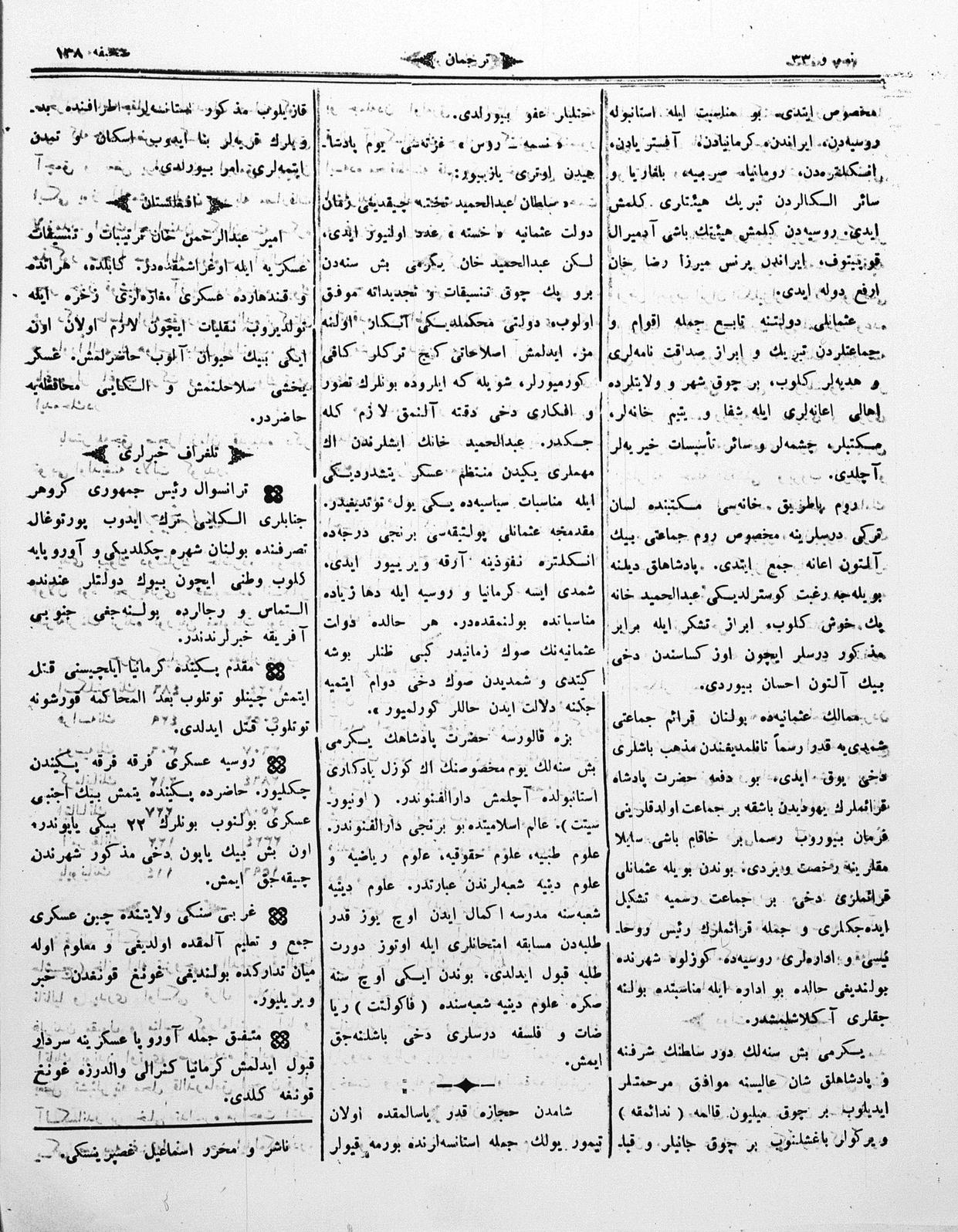 The name of the newspaper changed to Tercüman-ı Ahval-i Zaman in 1905. In 1909, it started to be published under its first name, Tercüman.