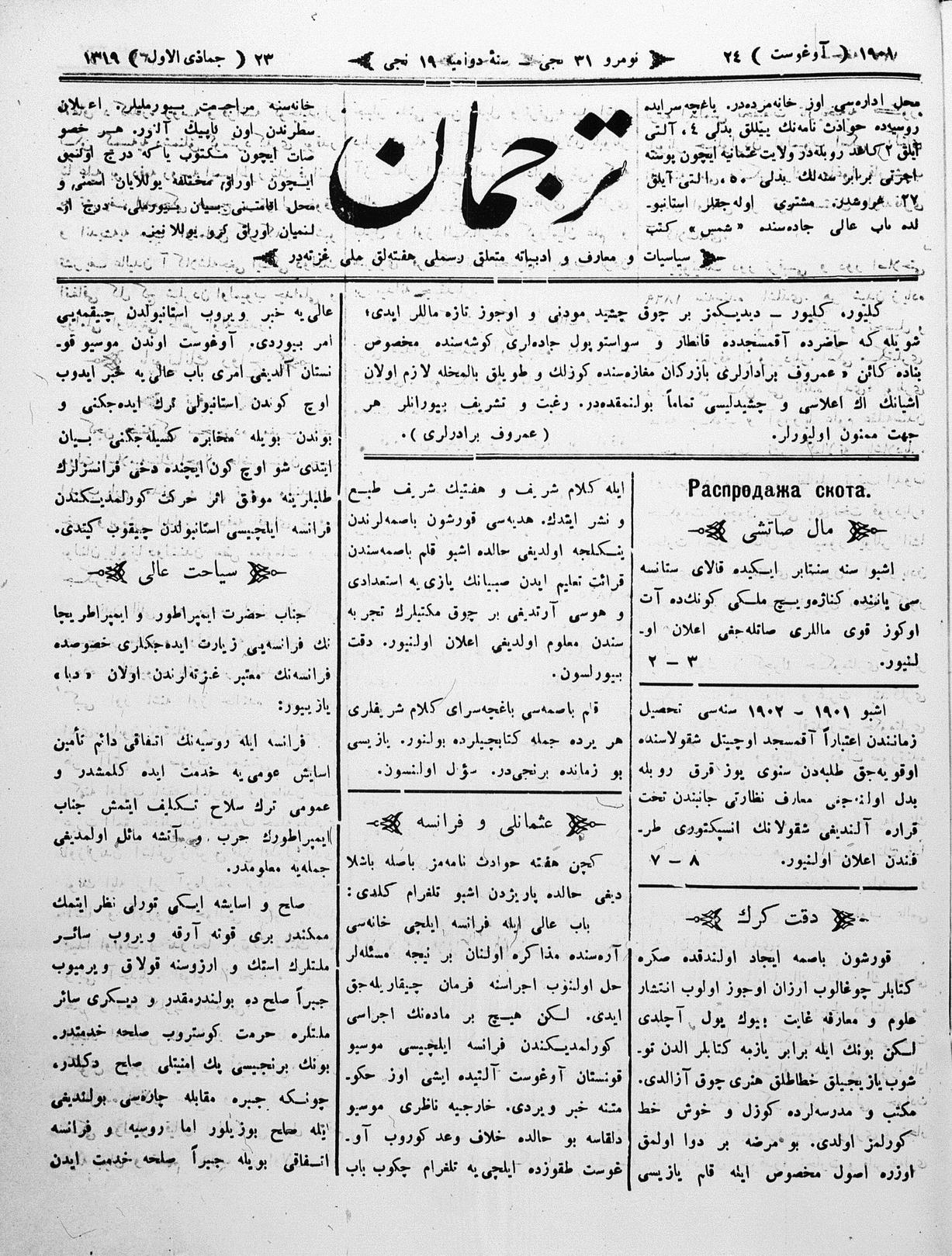 The name of the newspaper changed to Tercüman-ı Ahval-i Zaman in 1905. In 1909, it started to be published under its first name, Tercüman.