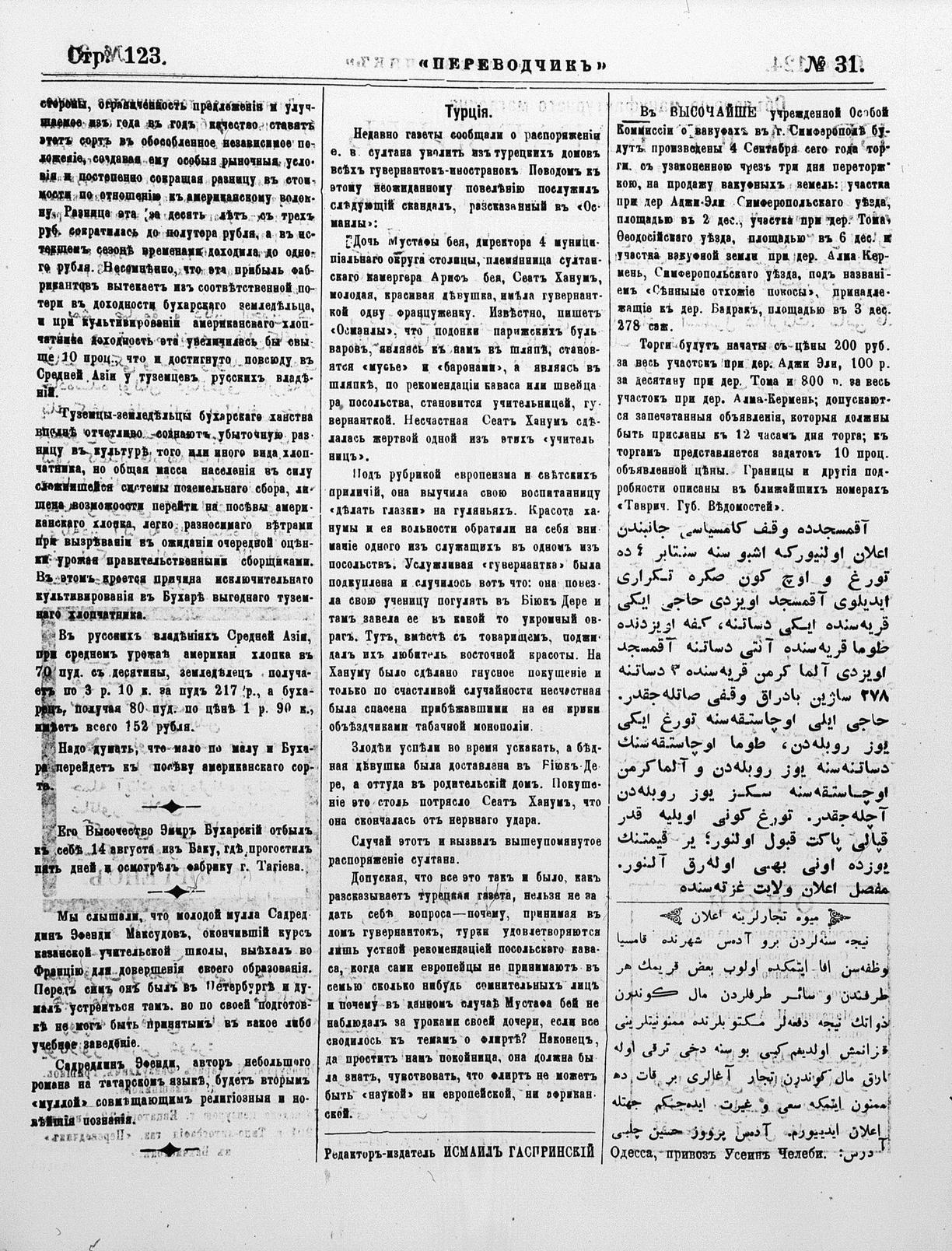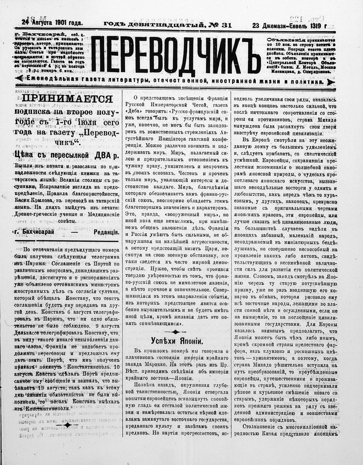Turkish-Russian newspaper published in Crimea by İsmail Gaspıralı.