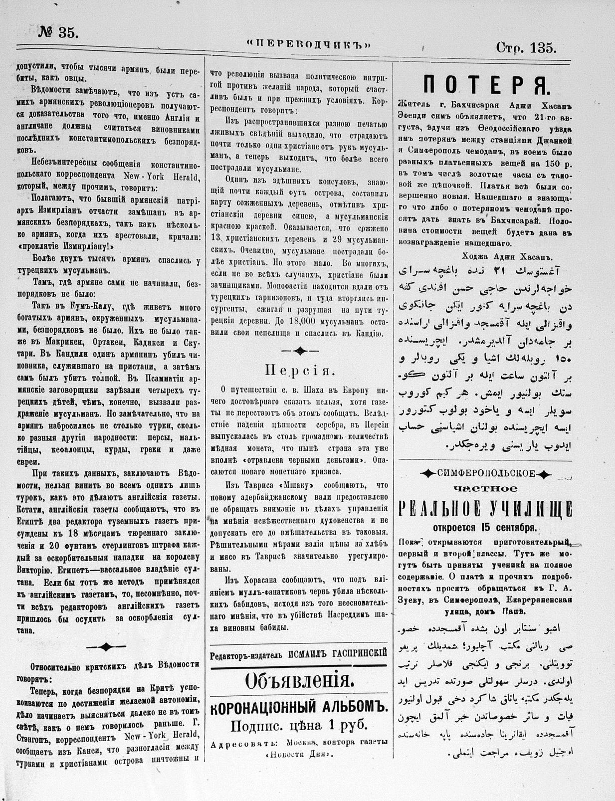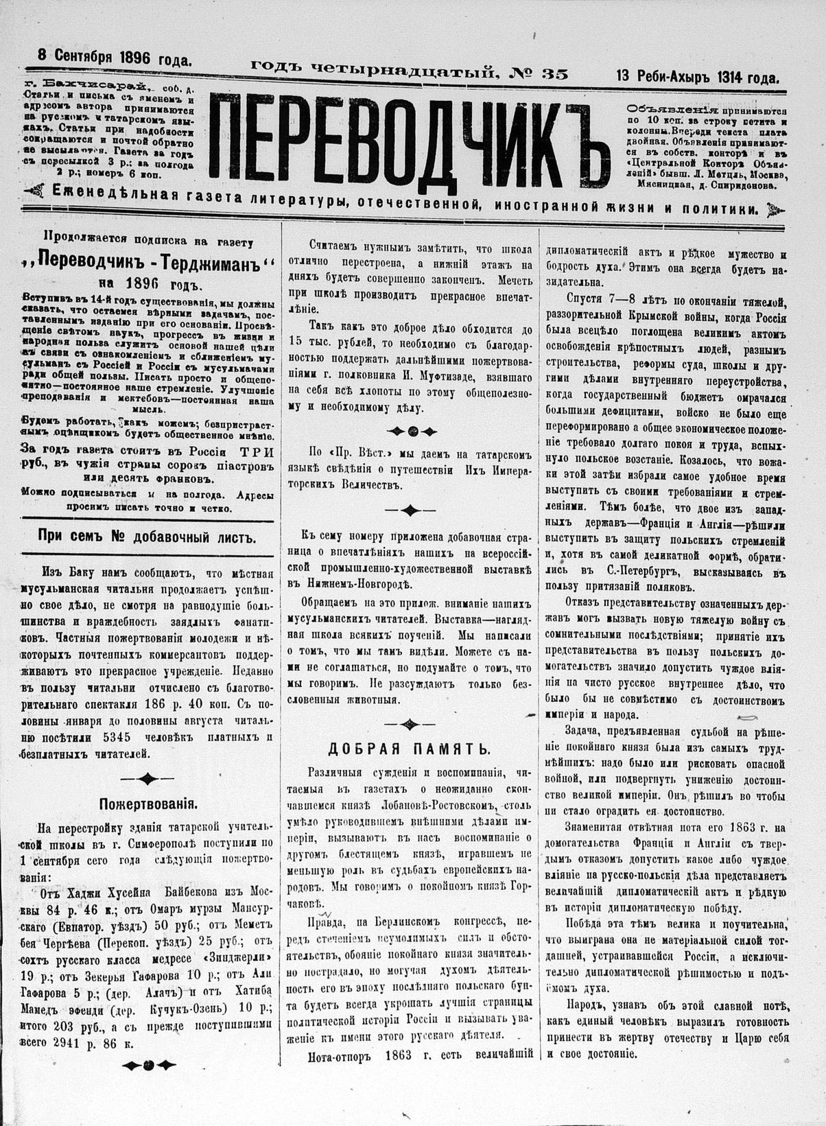 Turkish-Russian newspaper published in Crimea by İsmail Gaspıralı.