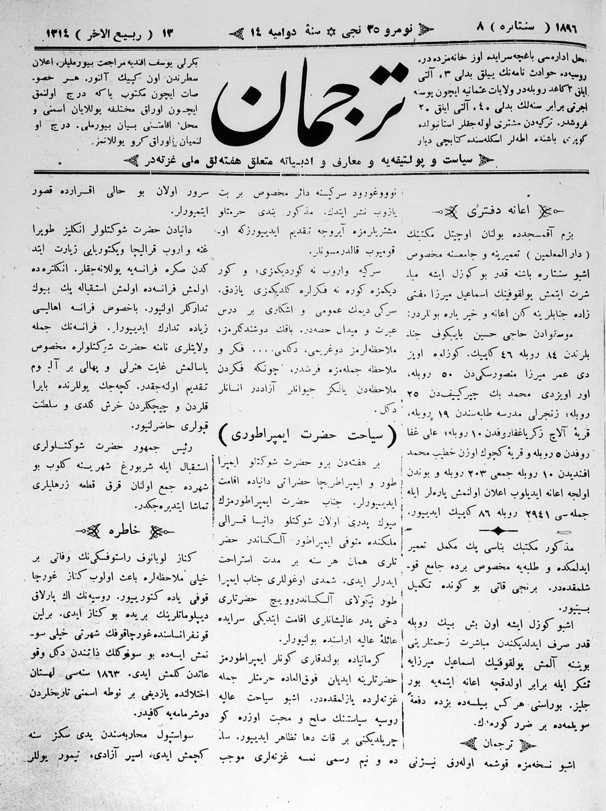 The name of the newspaper changed to Tercüman-ı Ahval-i Zaman in 1905. In 1909, it started to be published under its first name, Tercüman.