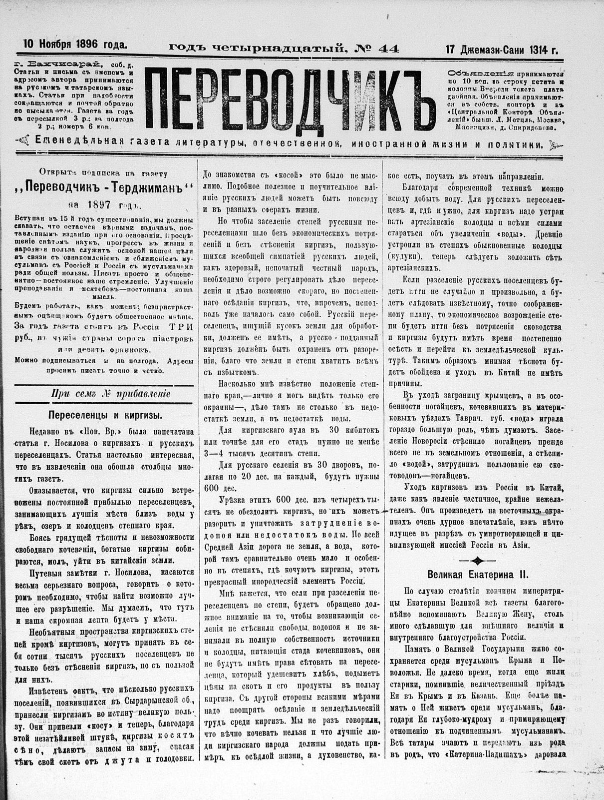 Turkish-Russian newspaper published in Crimea by İsmail Gaspıralı.