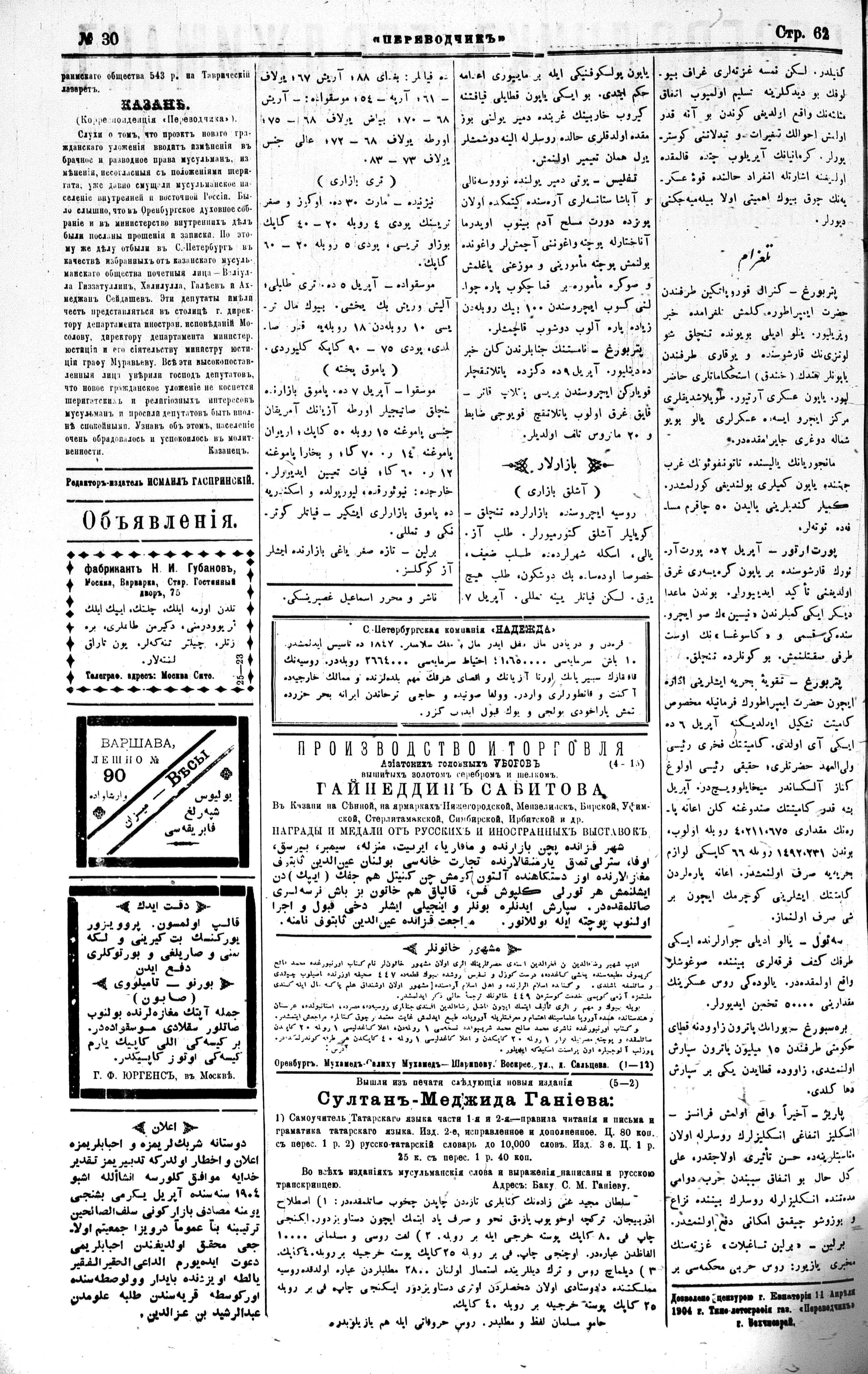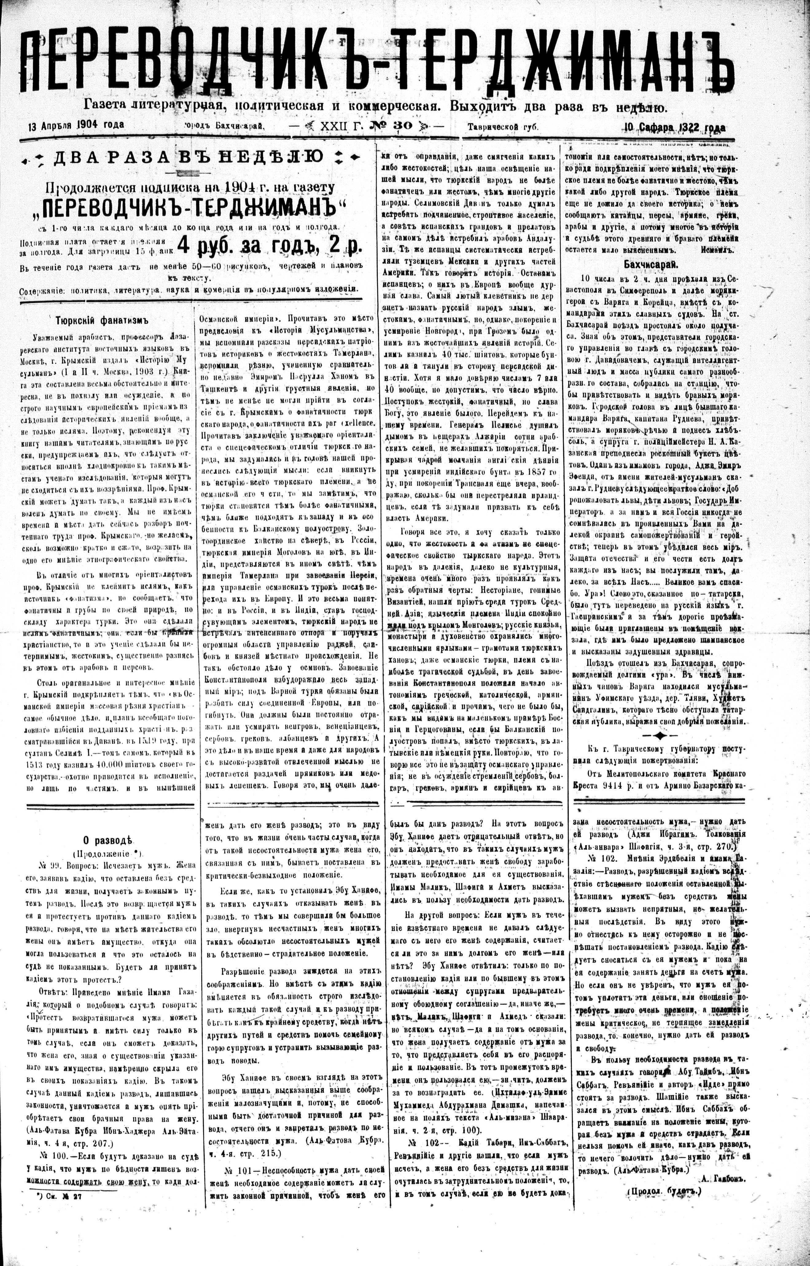 Tercüman, 13 April 1904 Year 22 No 30