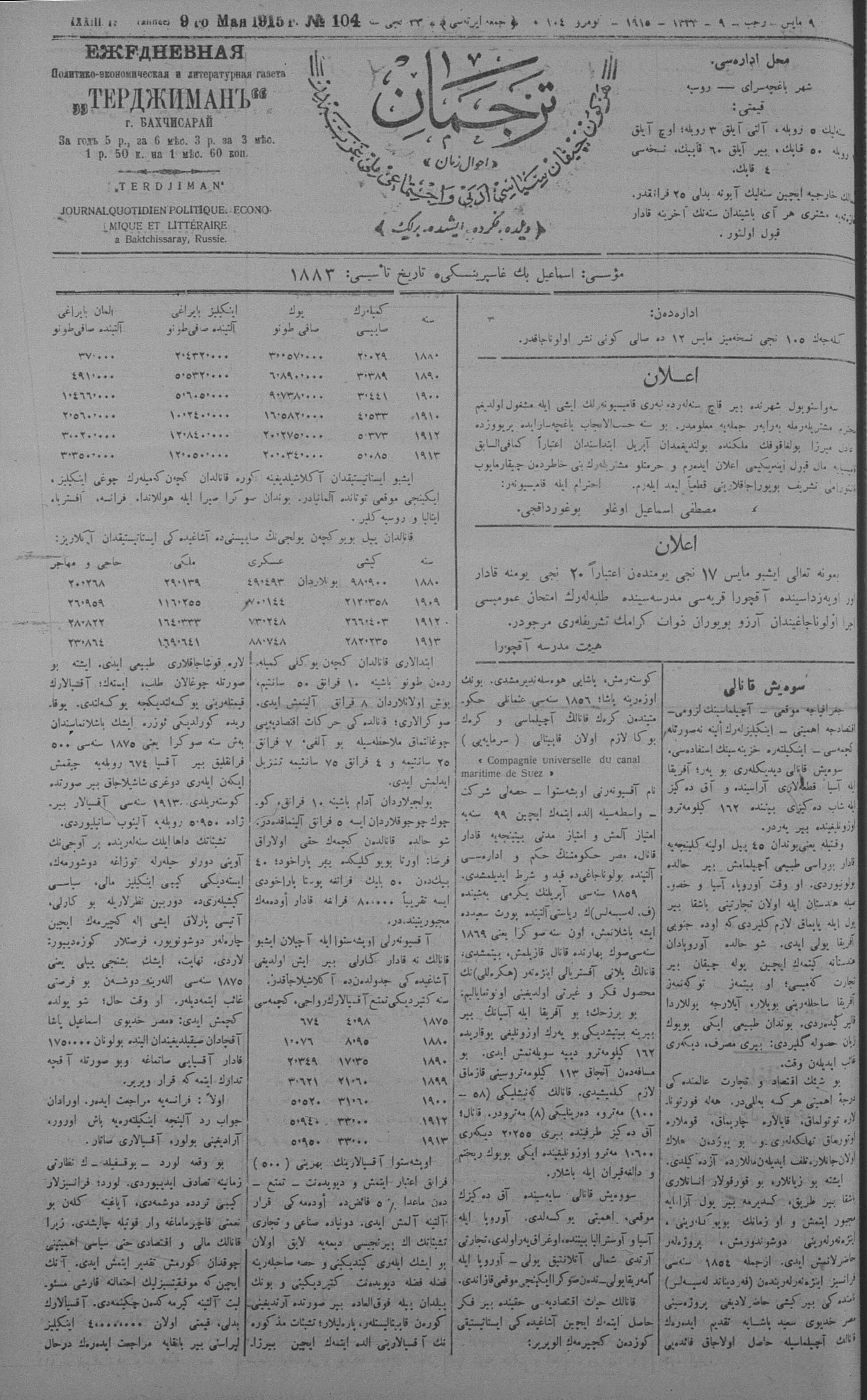 Turkish-Russian newspaper published in Crimea by İsmail Gaspıralı.