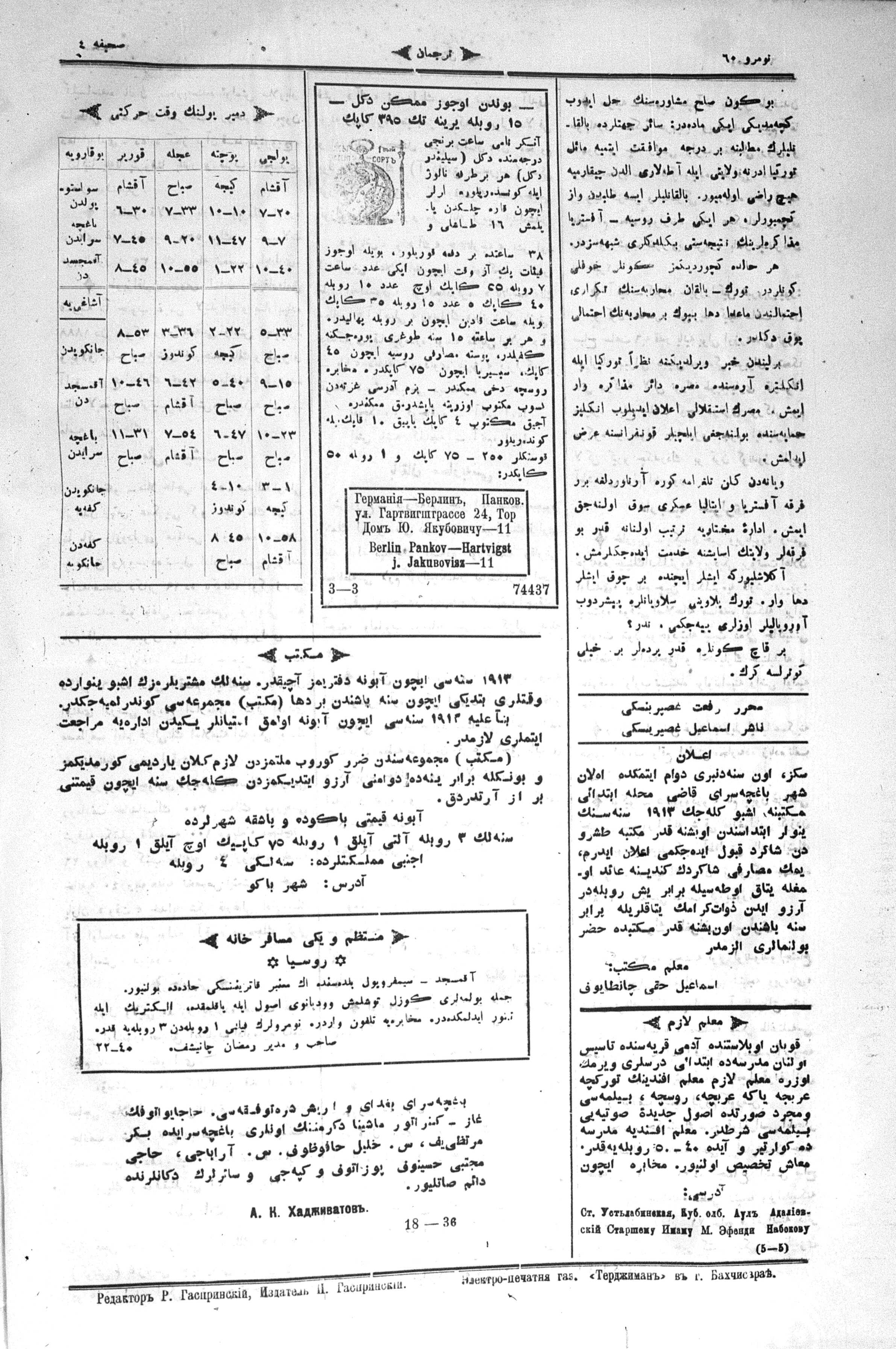 Different spellings of Tercüman: Terdzhiman, Terjuman, Perevodçik and Terjiman.