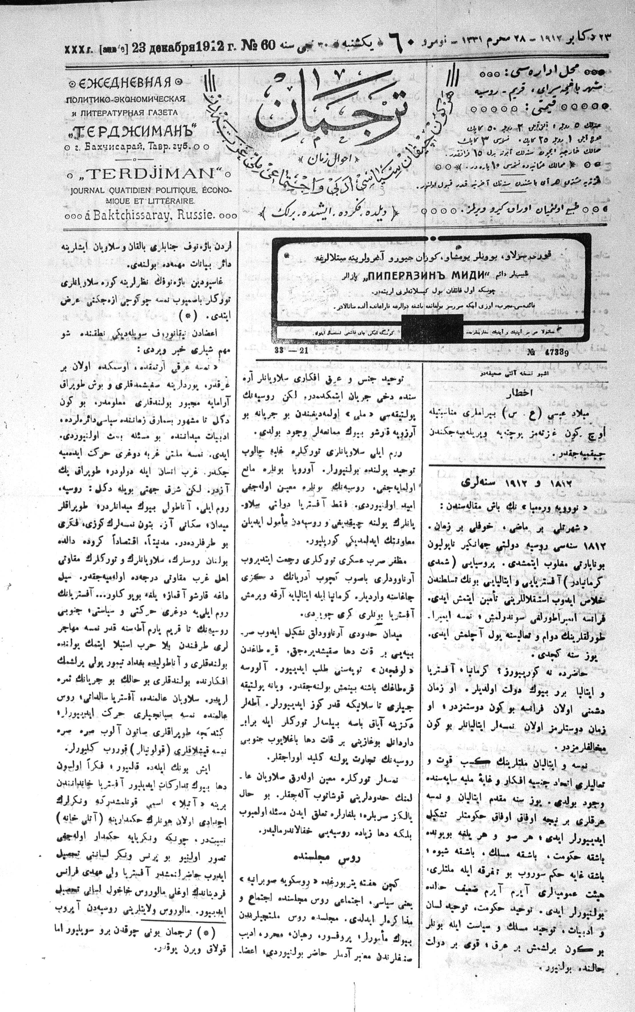 Tercüman, 23 December 1912 Year 30 No 60