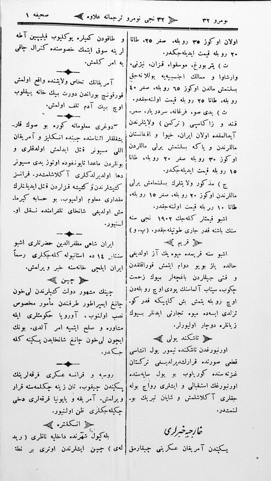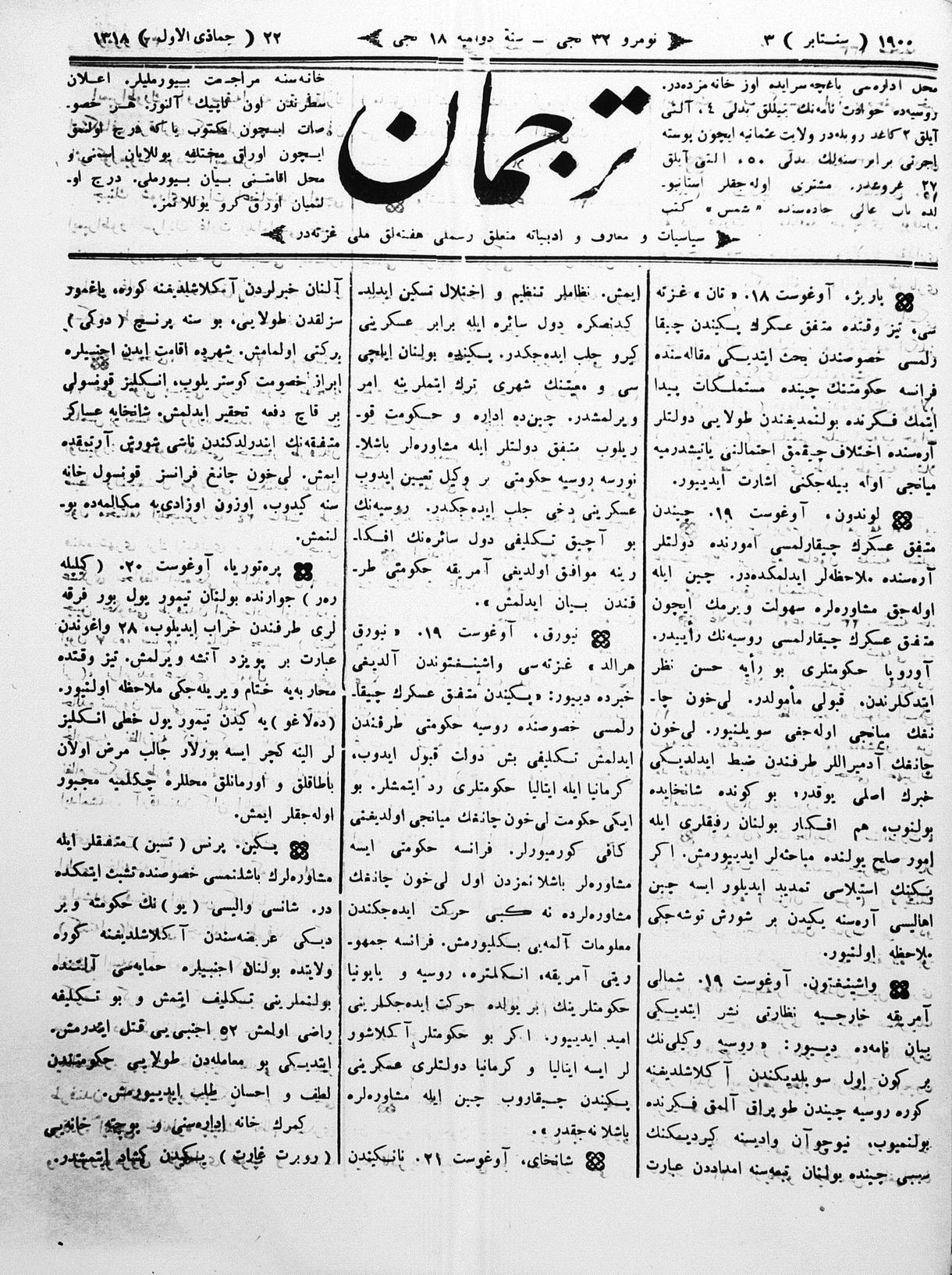 The name of the newspaper changed to Tercüman-ı Ahval-i Zaman in 1905. In 1909, it started to be published under its first name, Tercüman.