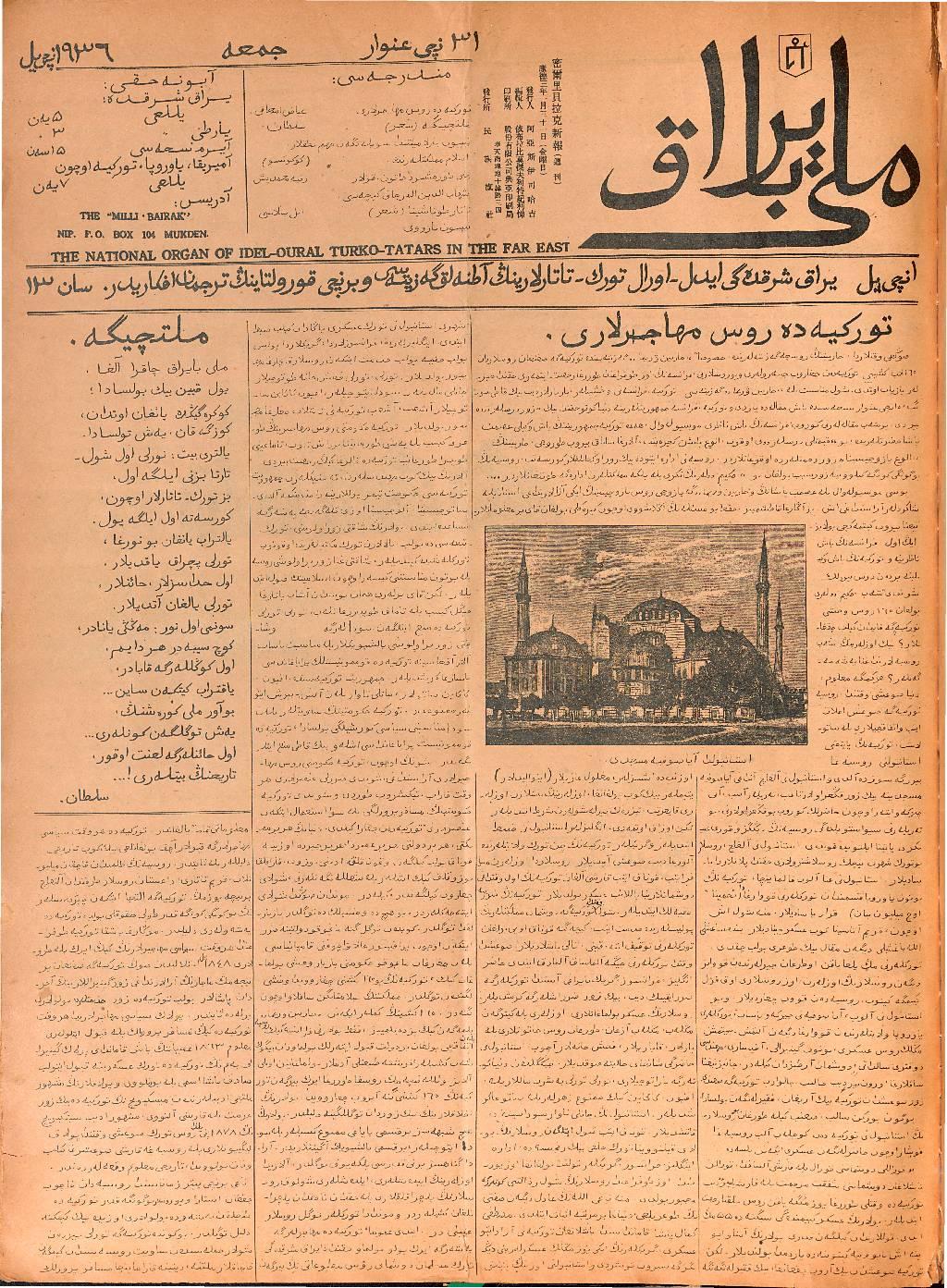 The Milli Bayrak newspaper was printed in Mukden.