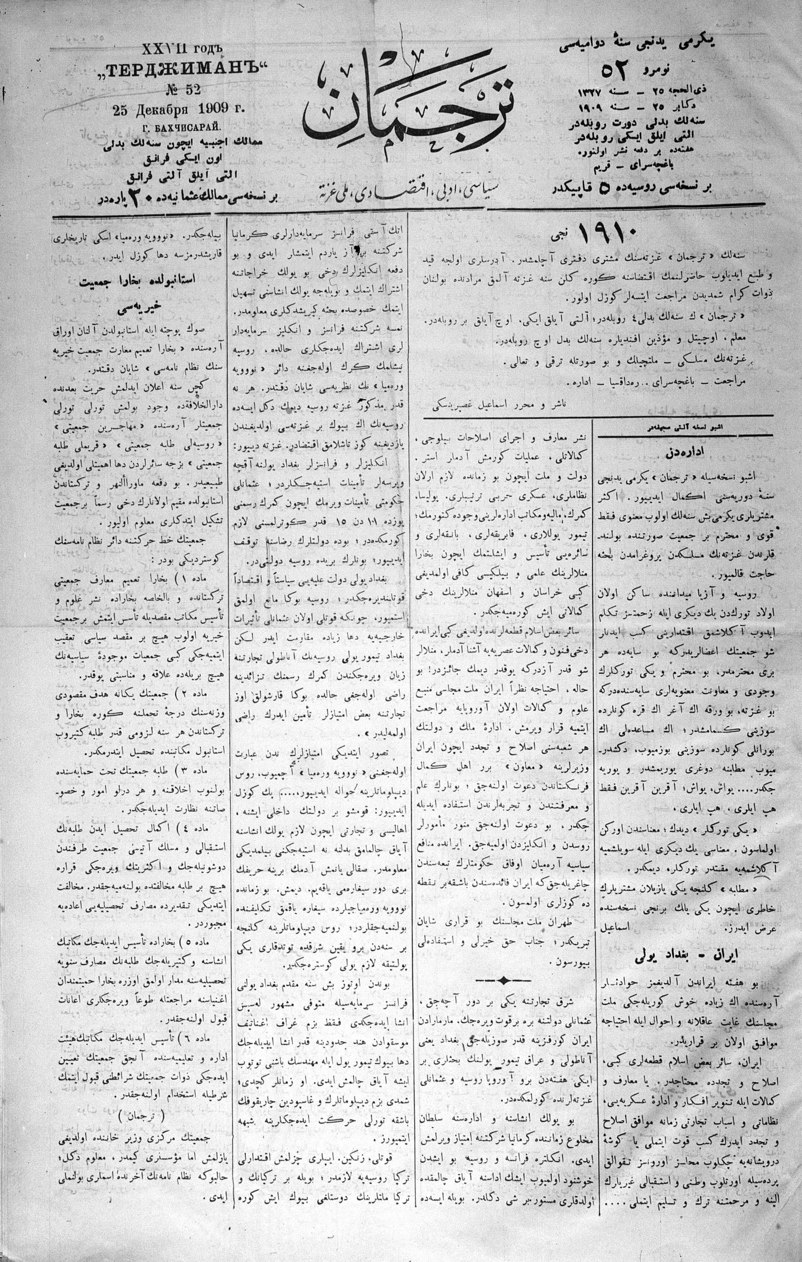 Turkish-Russian newspaper published in Crimea by İsmail Gaspıralı.