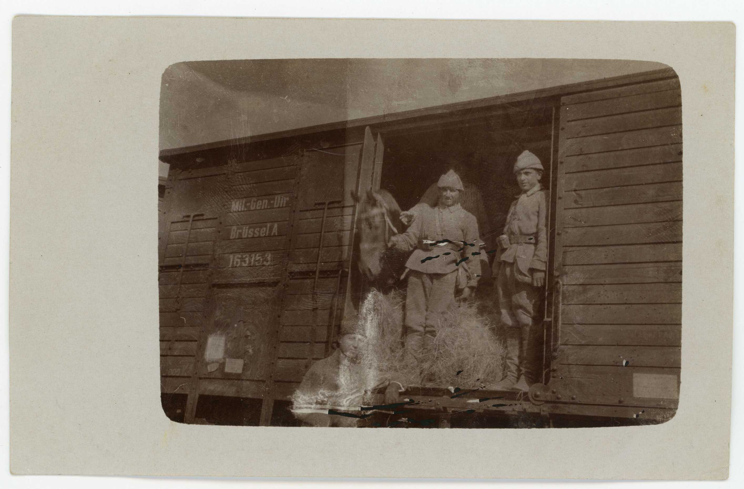 Ekrem Rüştü Akömer bir yük vagonunun önünde