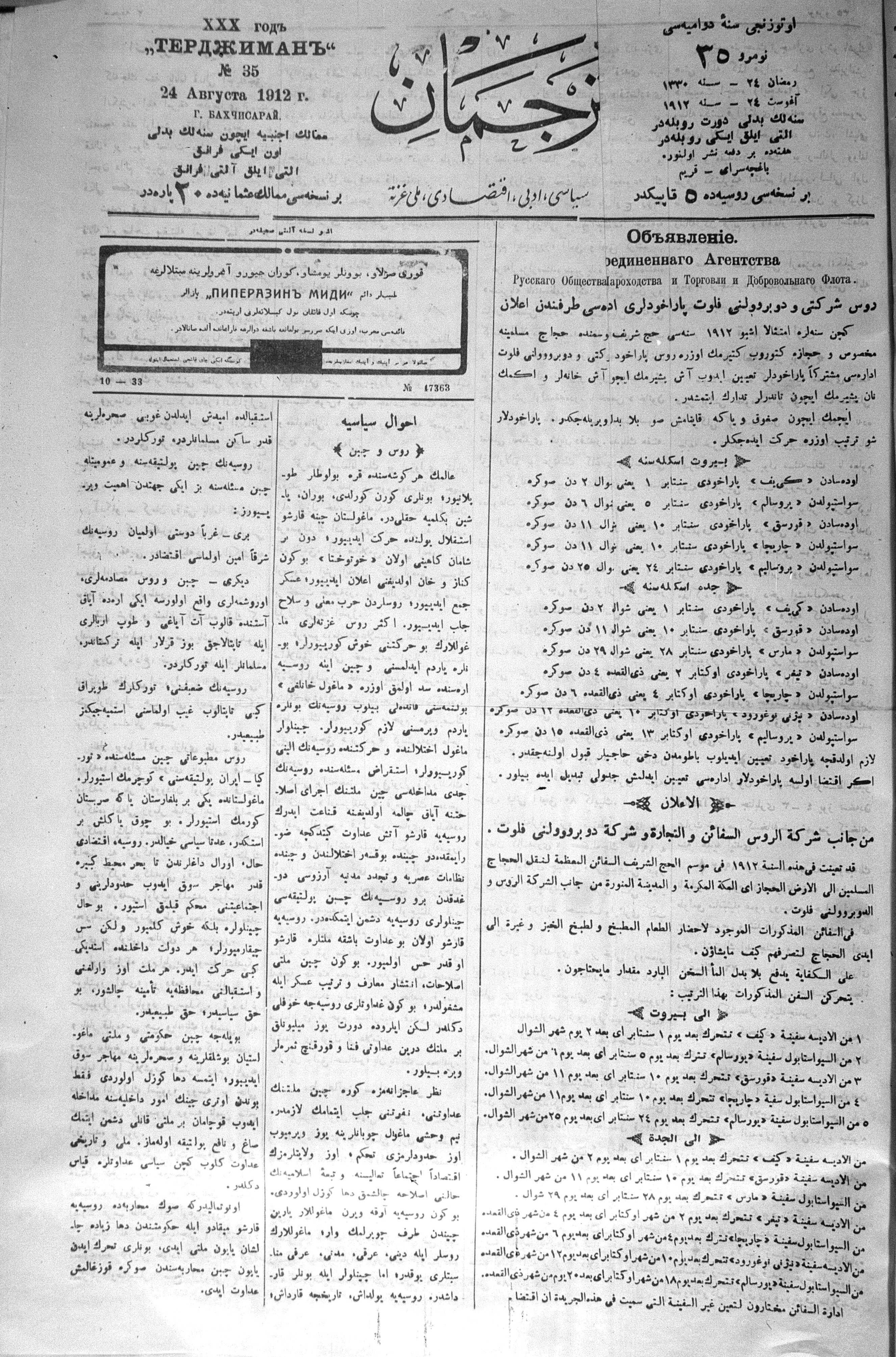 Turkish-Russian newspaper published in Crimea by İsmail Gaspıralı.