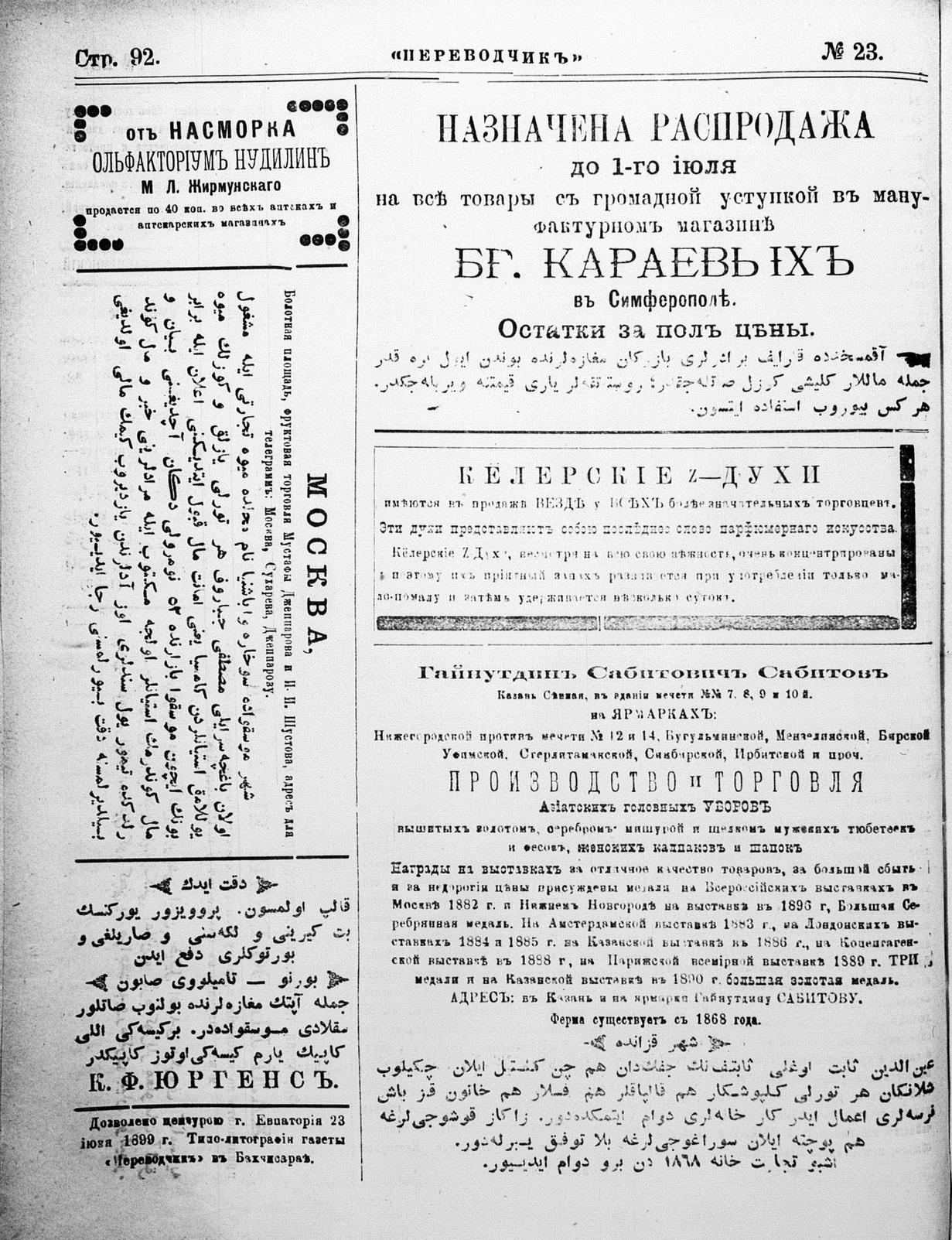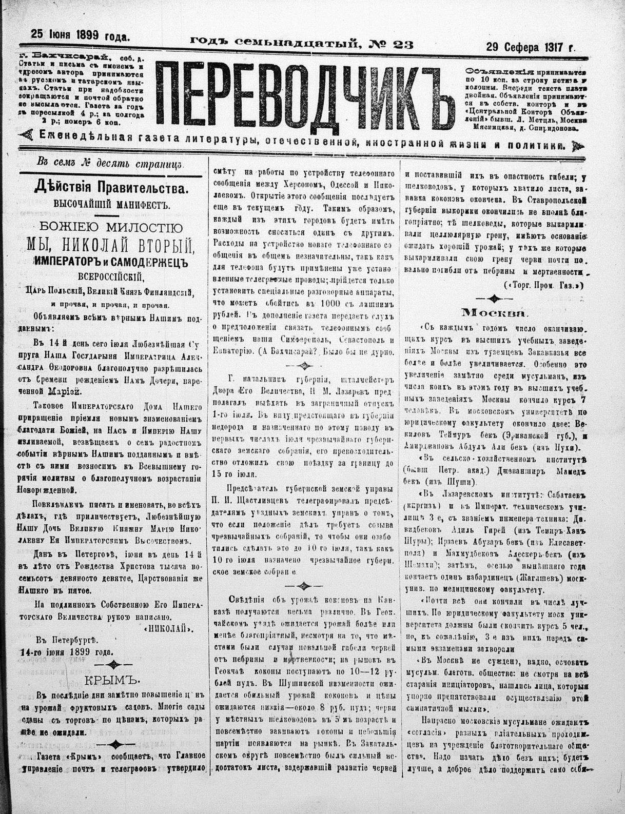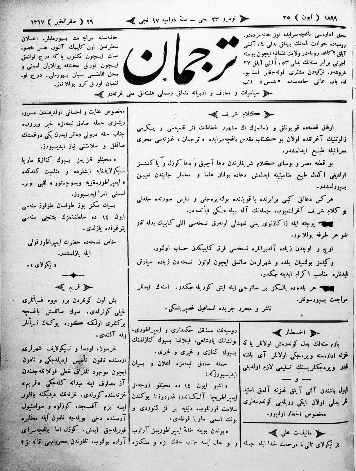 Tercüman, 25 June 1899 Year 17 No 23