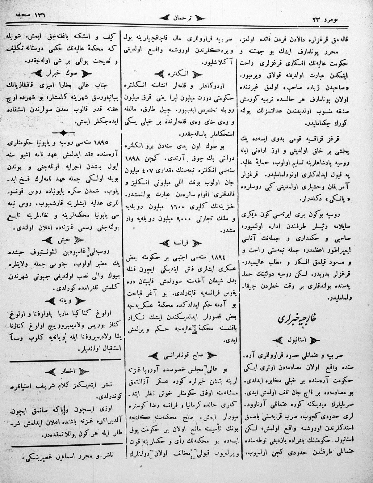 The name of the newspaper changed to Tercüman-ı Ahval-i Zaman in 1905. In 1909, it started to be published under its first name, Tercüman.