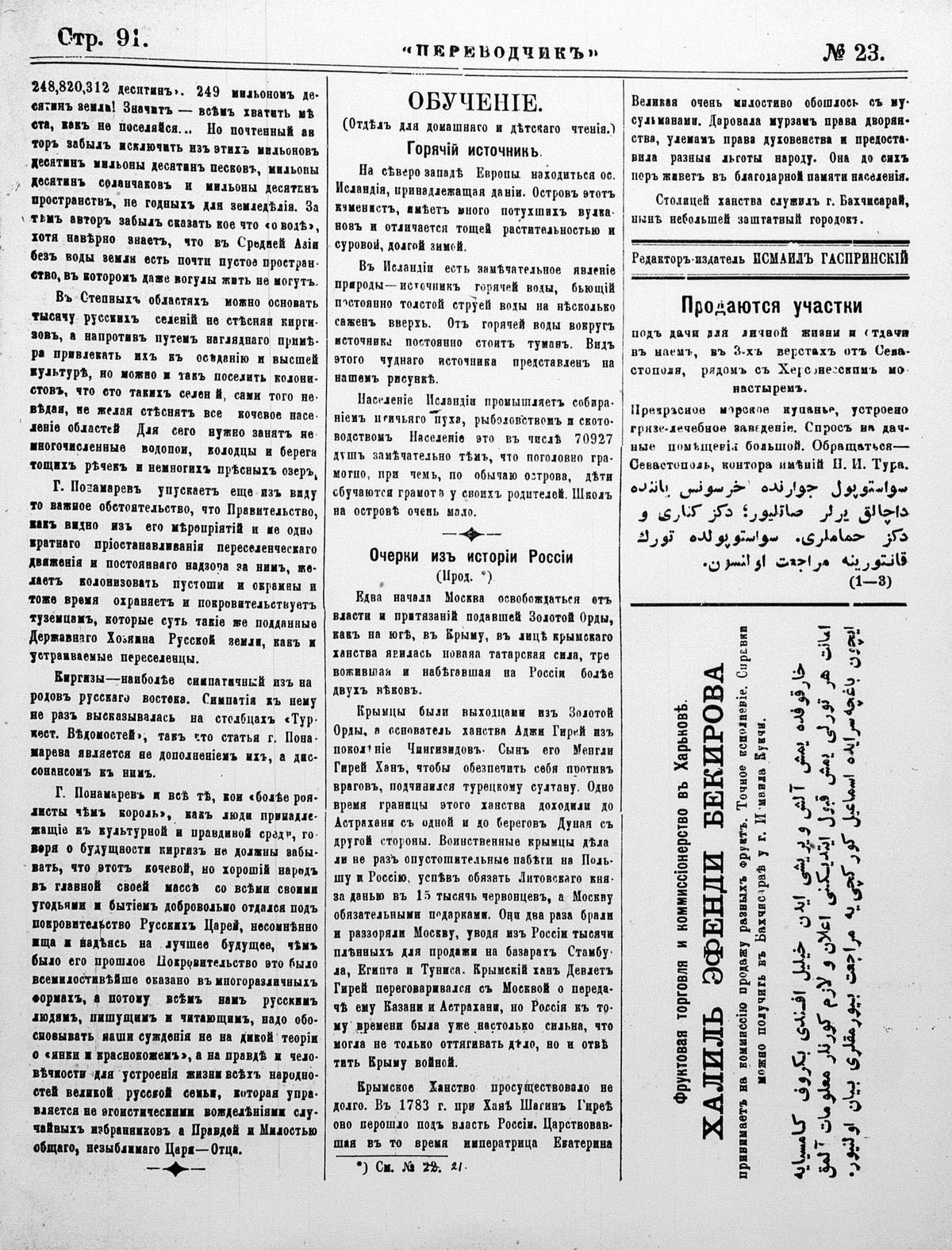 Turkish-Russian newspaper published in Crimea by İsmail Gaspıralı.