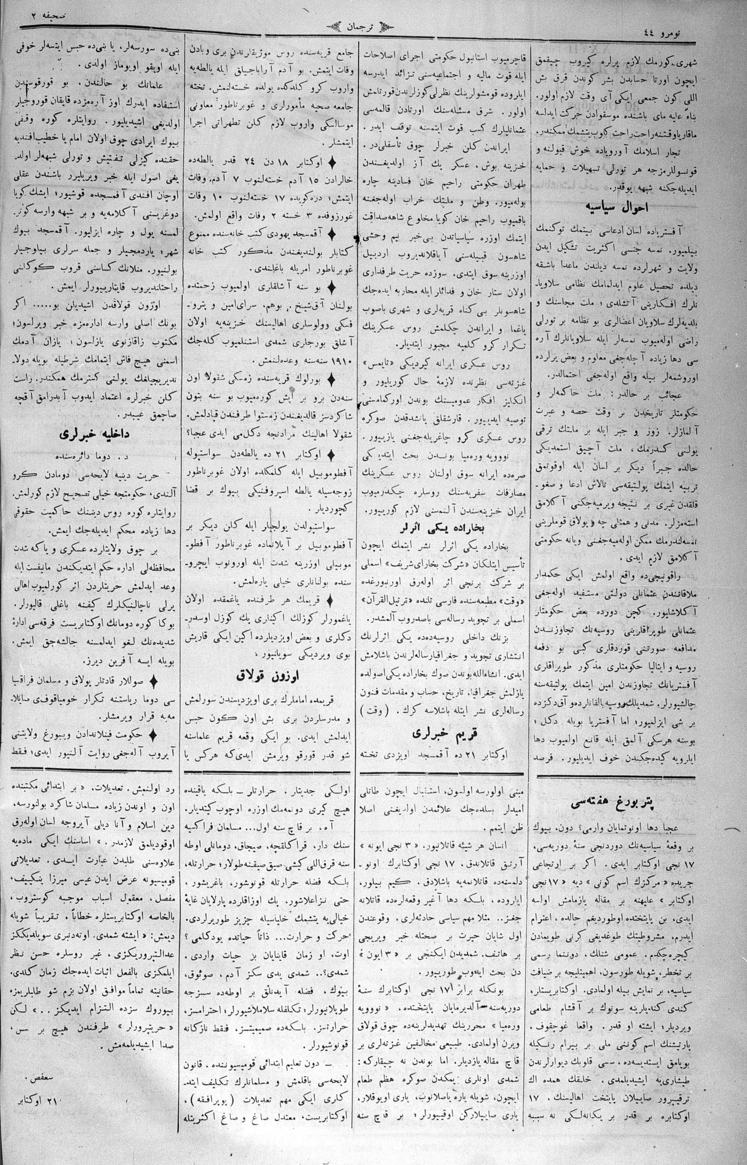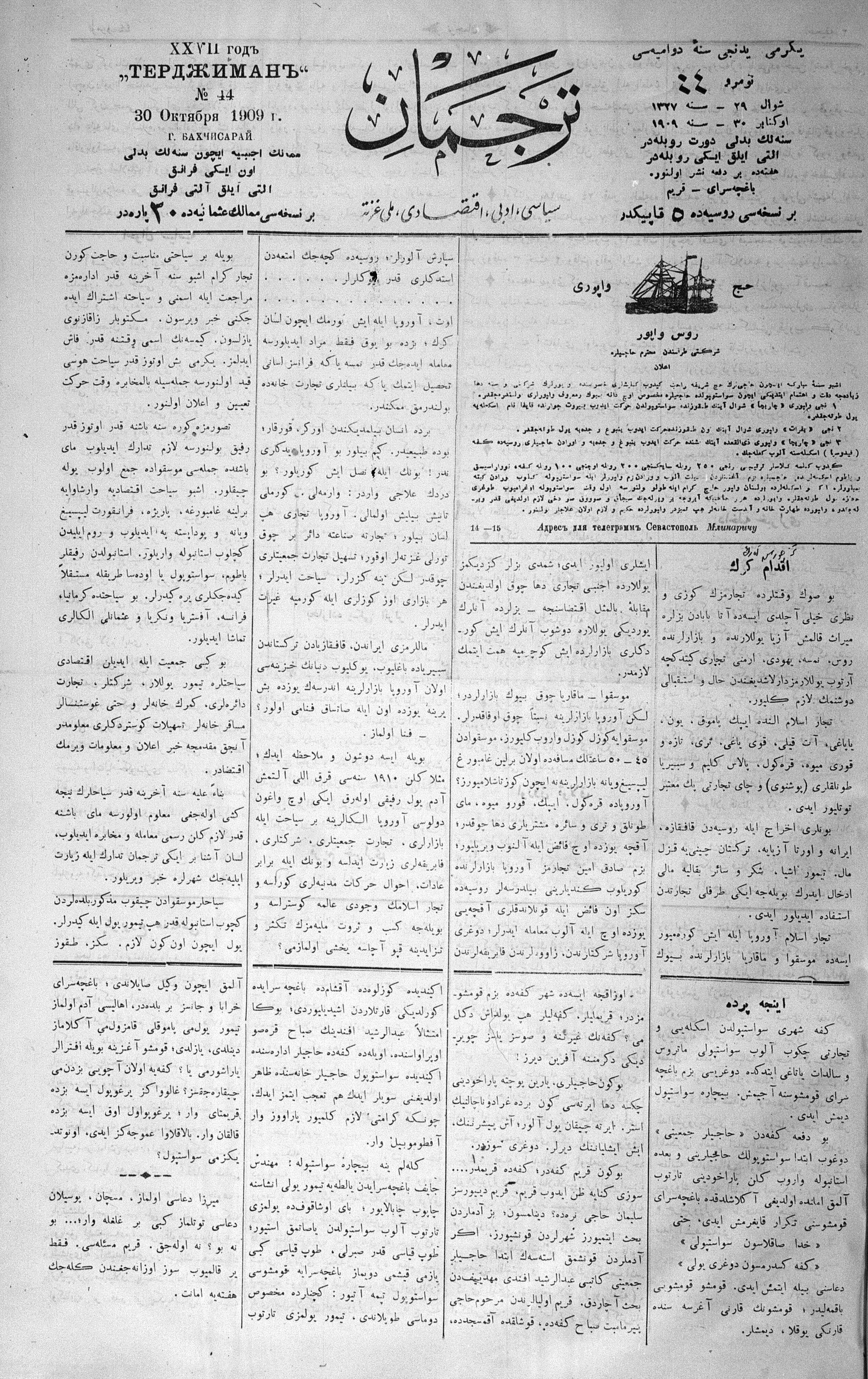 Tercüman, 30 October 1909 Year 27 No 44