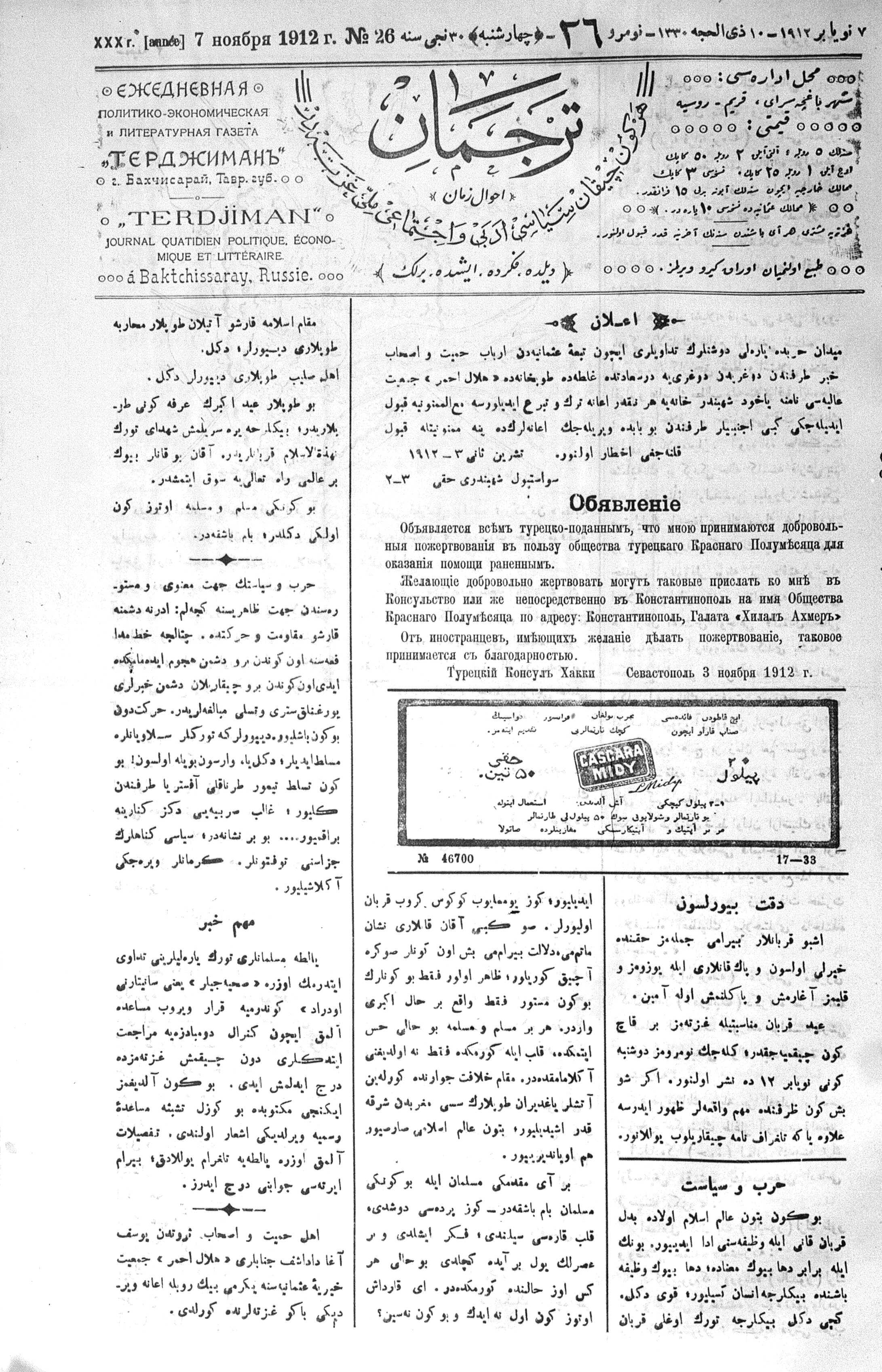 Tercüman, 07 November 1912 Year 30 No 26