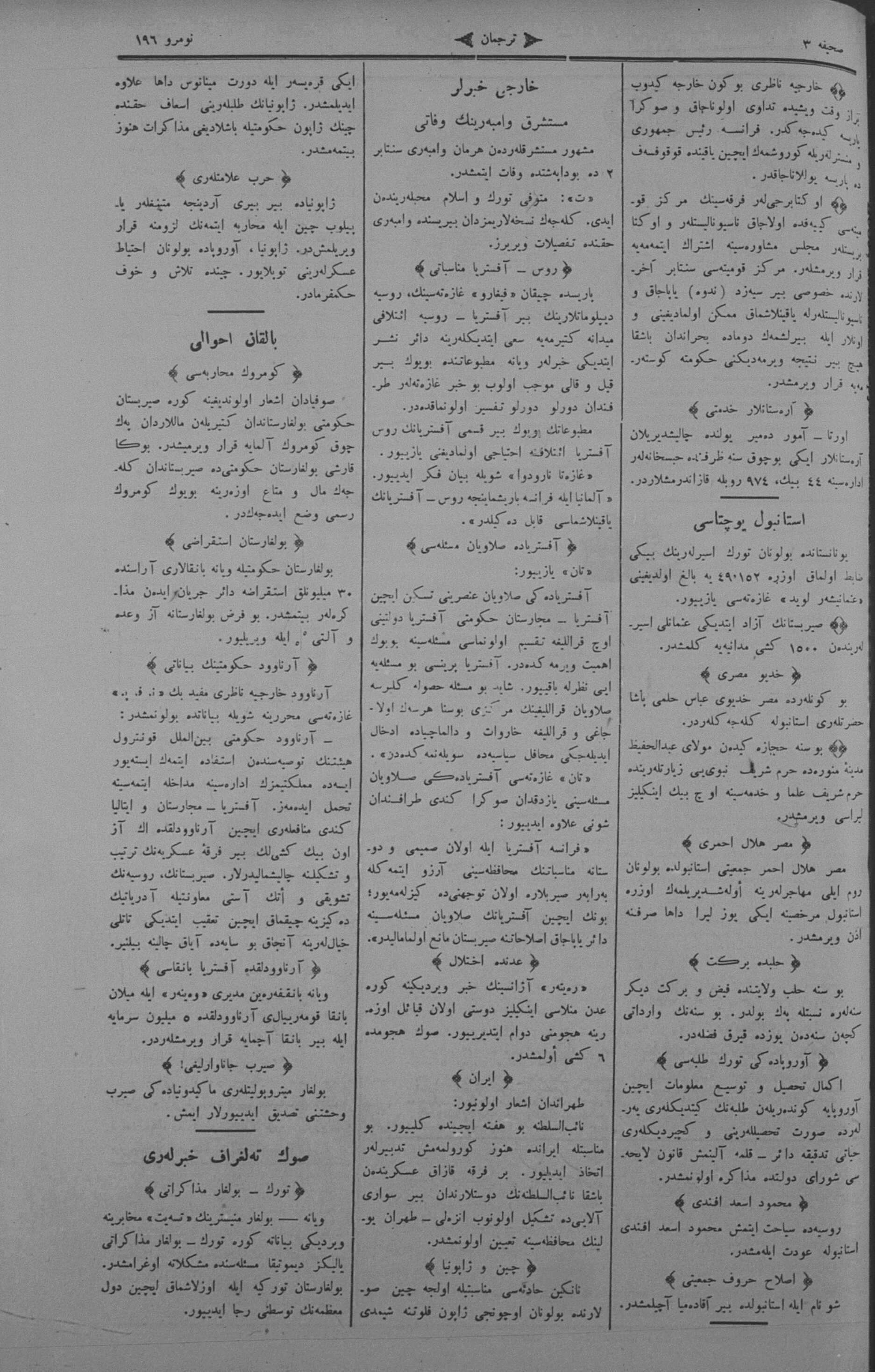 The name of the newspaper changed to Tercüman-ı Ahval-i Zaman in 1905. In 1909, it started to be published under its first name, Tercüman.