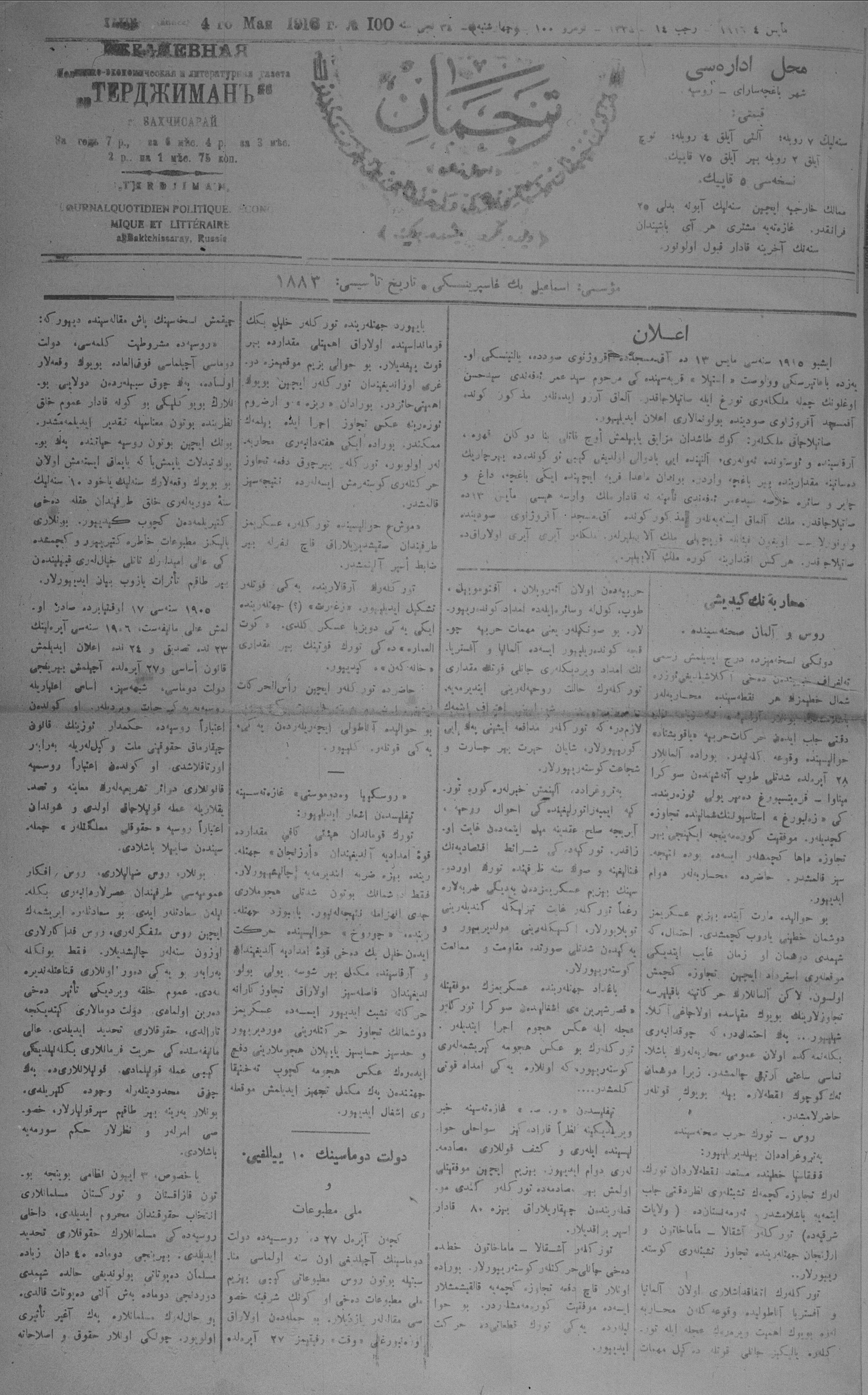Turkish-Russian newspaper published in Crimea by İsmail Gaspıralı.