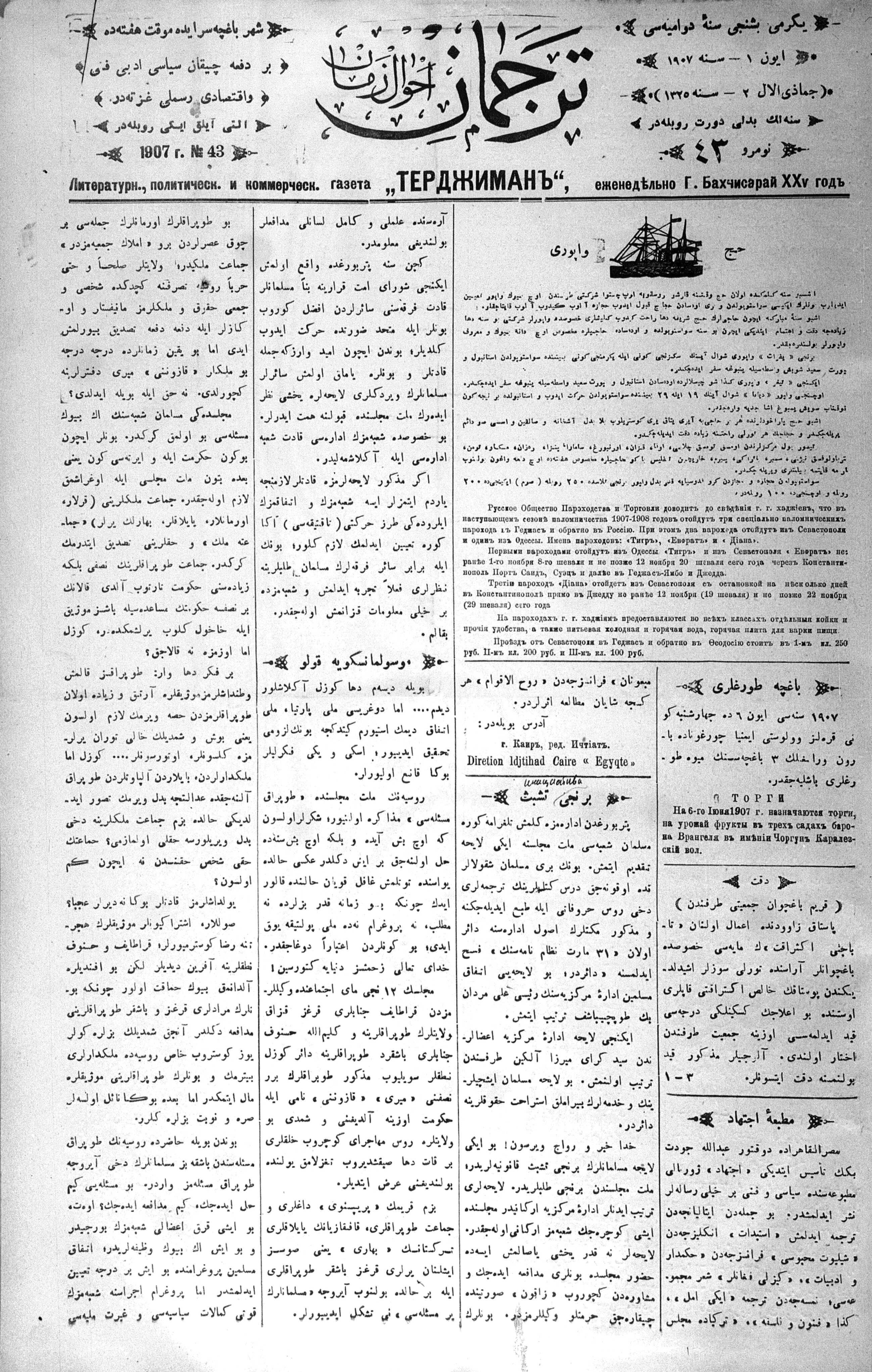 Tercüman, 01 June 1907 Year 25 No 43