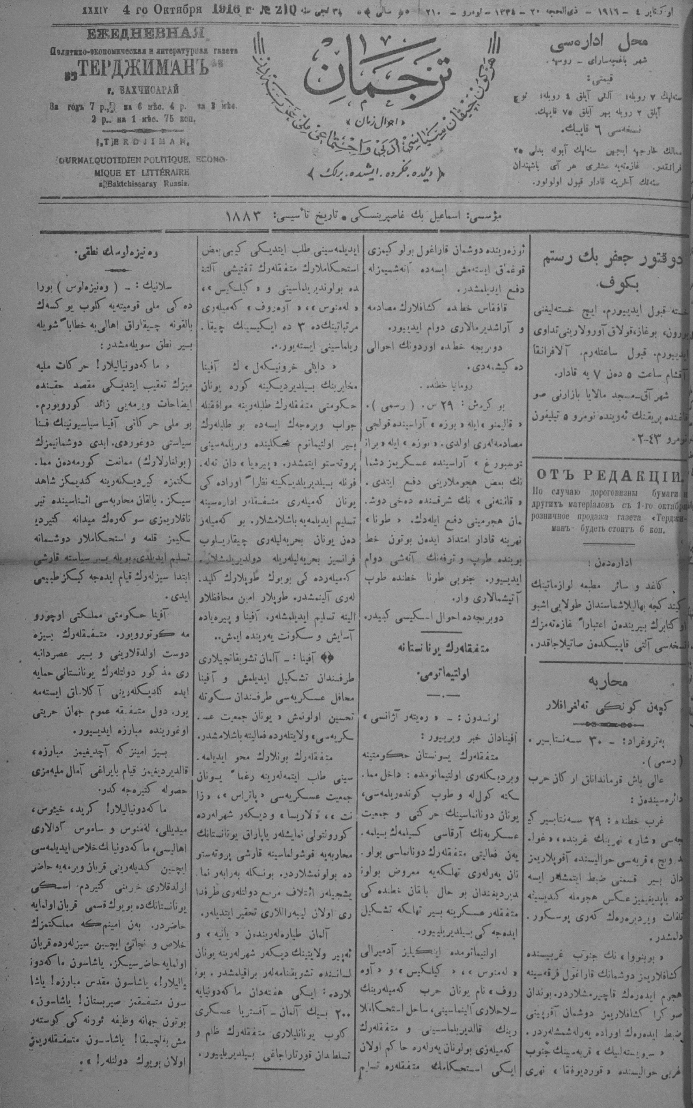 Tercüman, 04 October 1916 Year 34 No 210