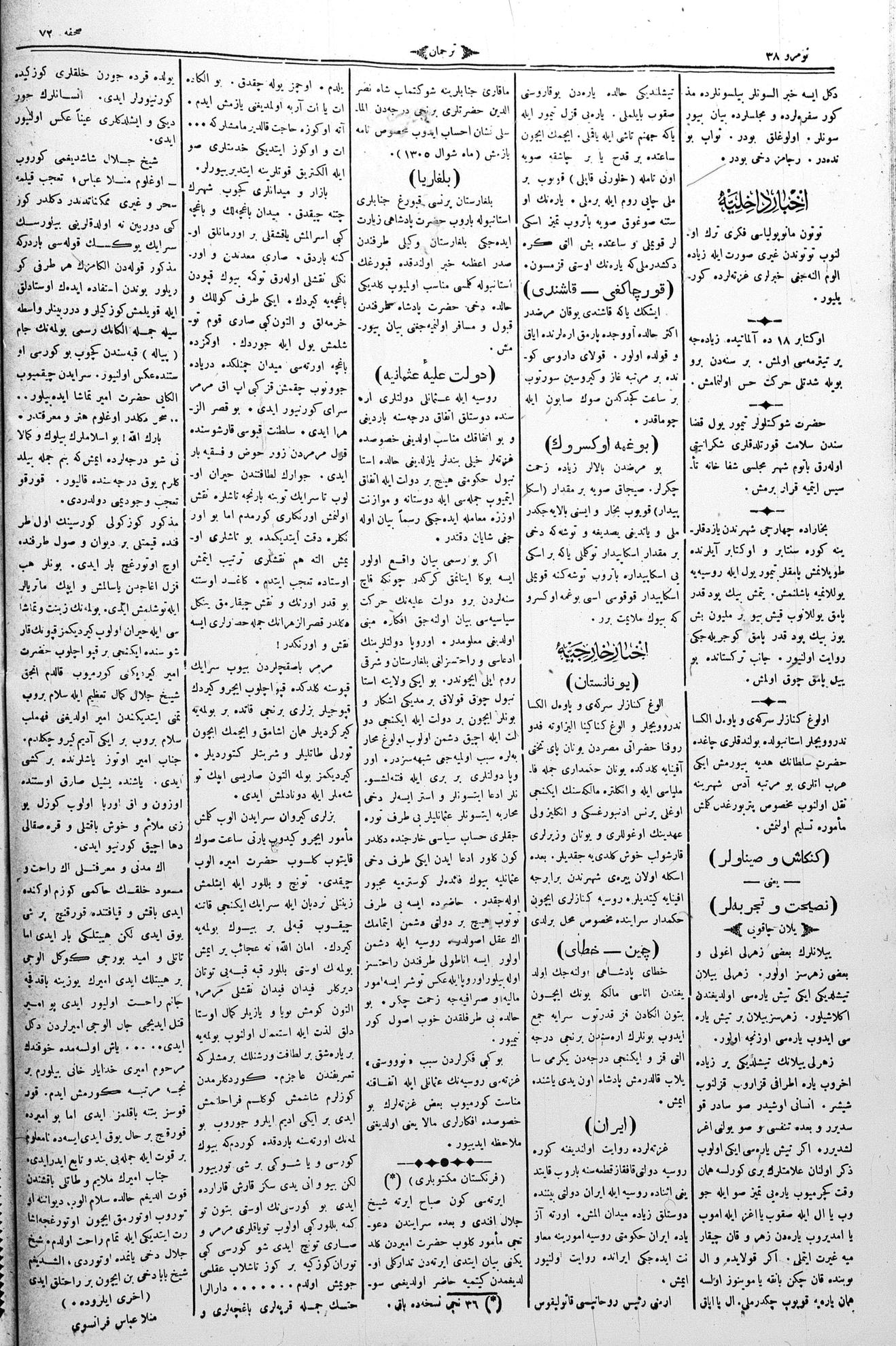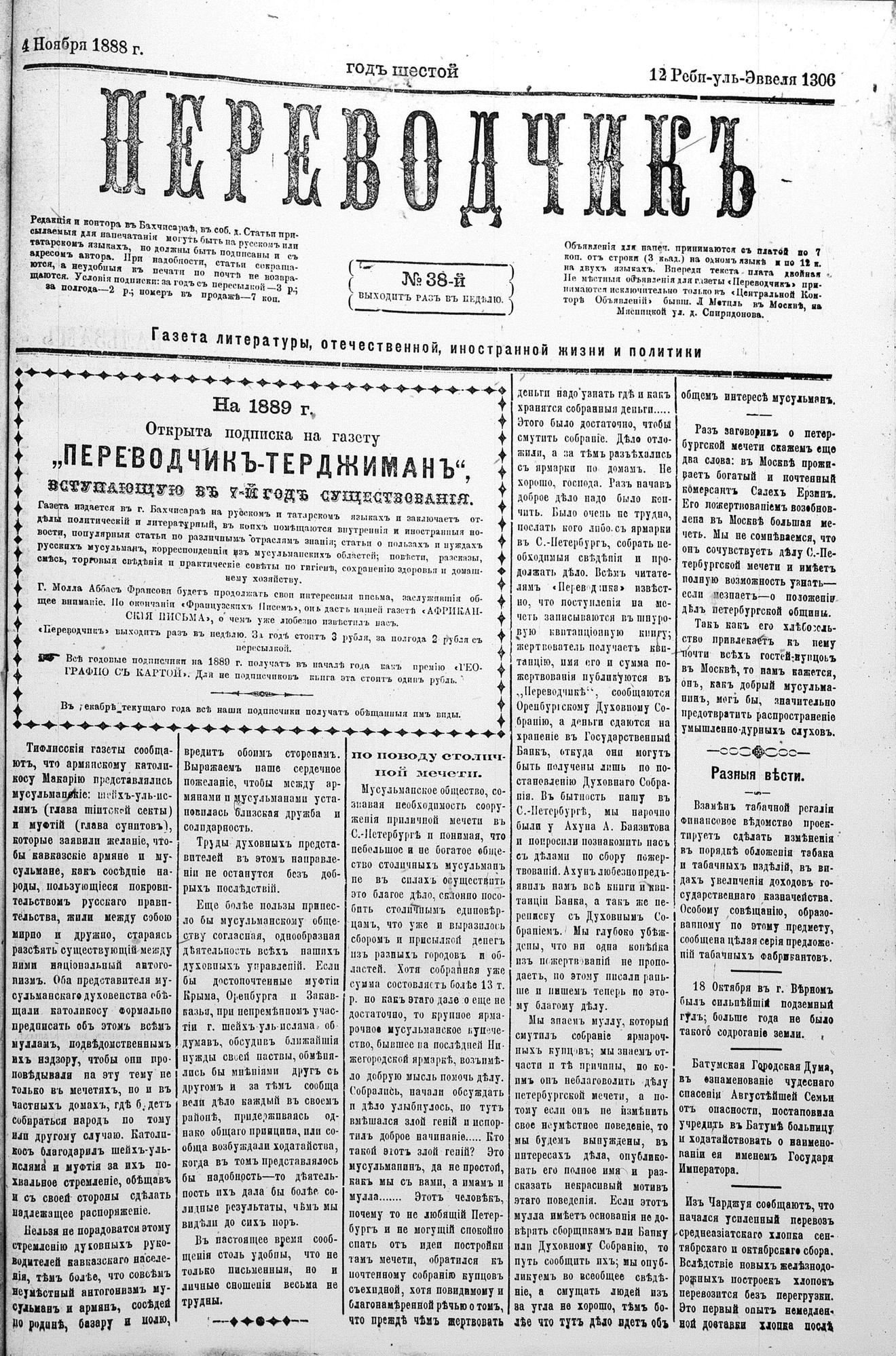 Tercüman, 04 November 1888 Year 6 No 38