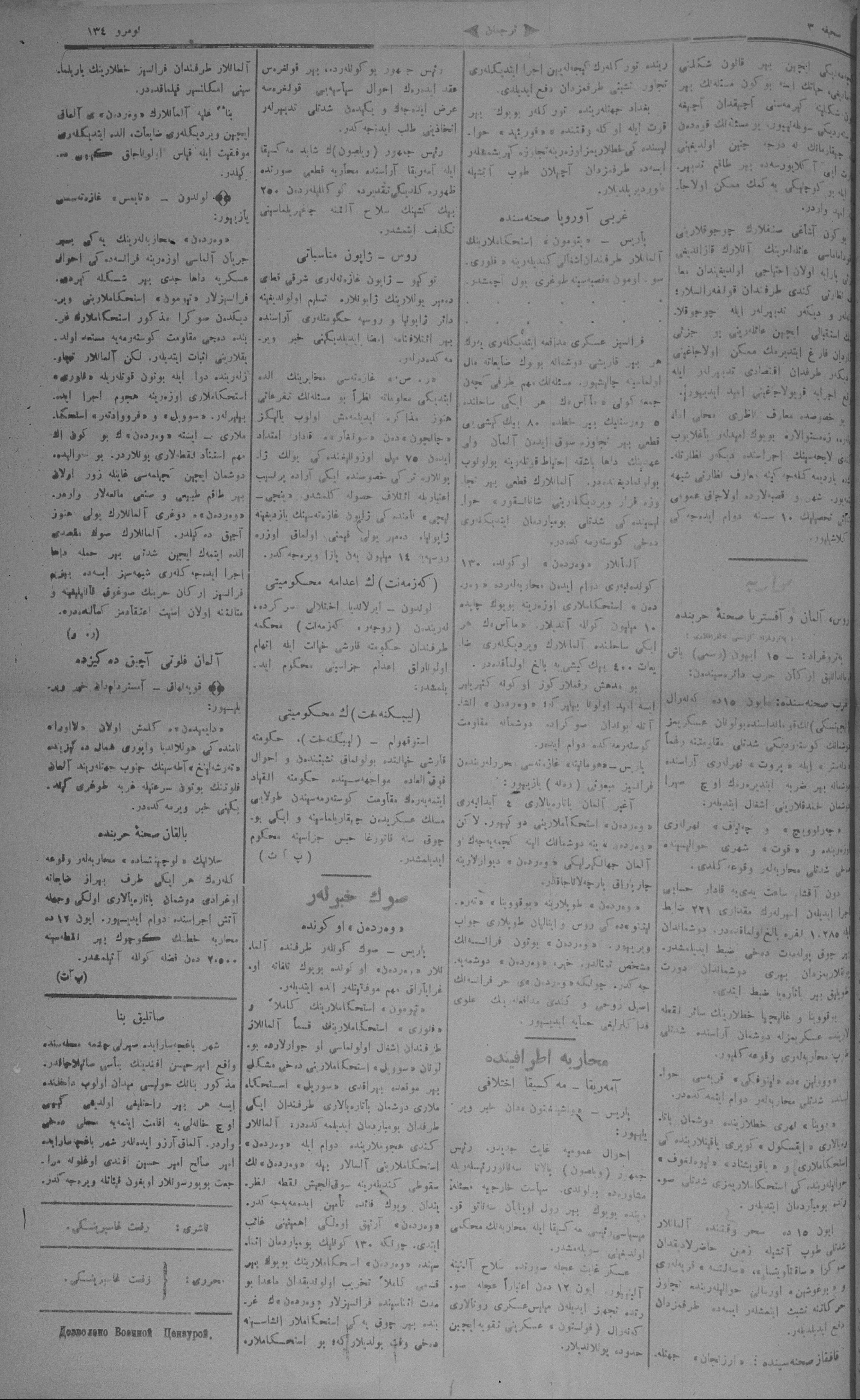Tercüman, 19 June 1916 Year 34 No 134