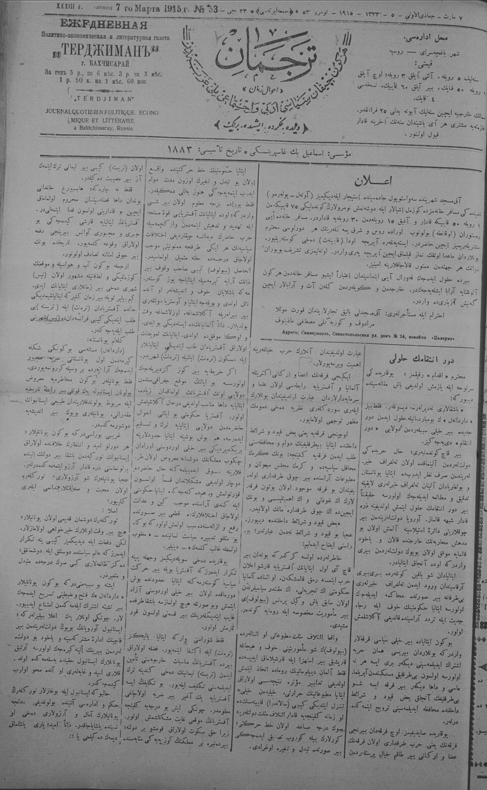 Tercüman, 07 March 1915 Year 33 No 53