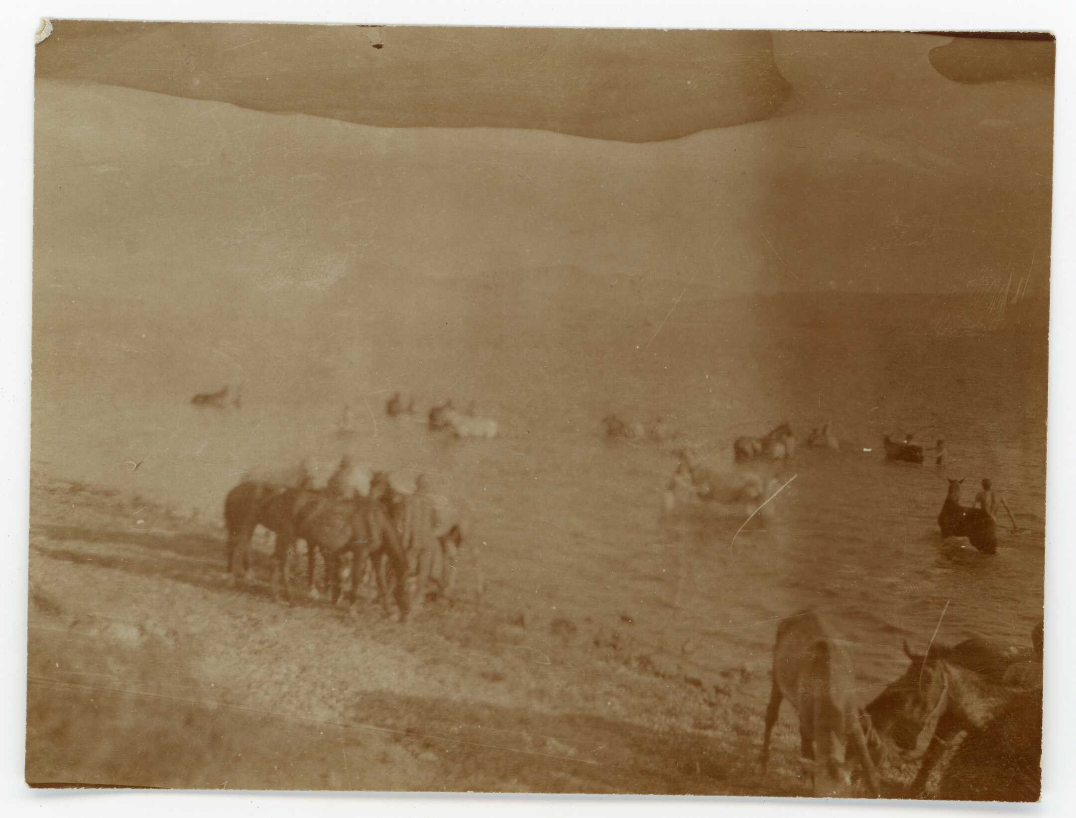 Çanakkale Cephesi'nde Akbaş'ta Osmanlı süvarileri ve atları denize girerken