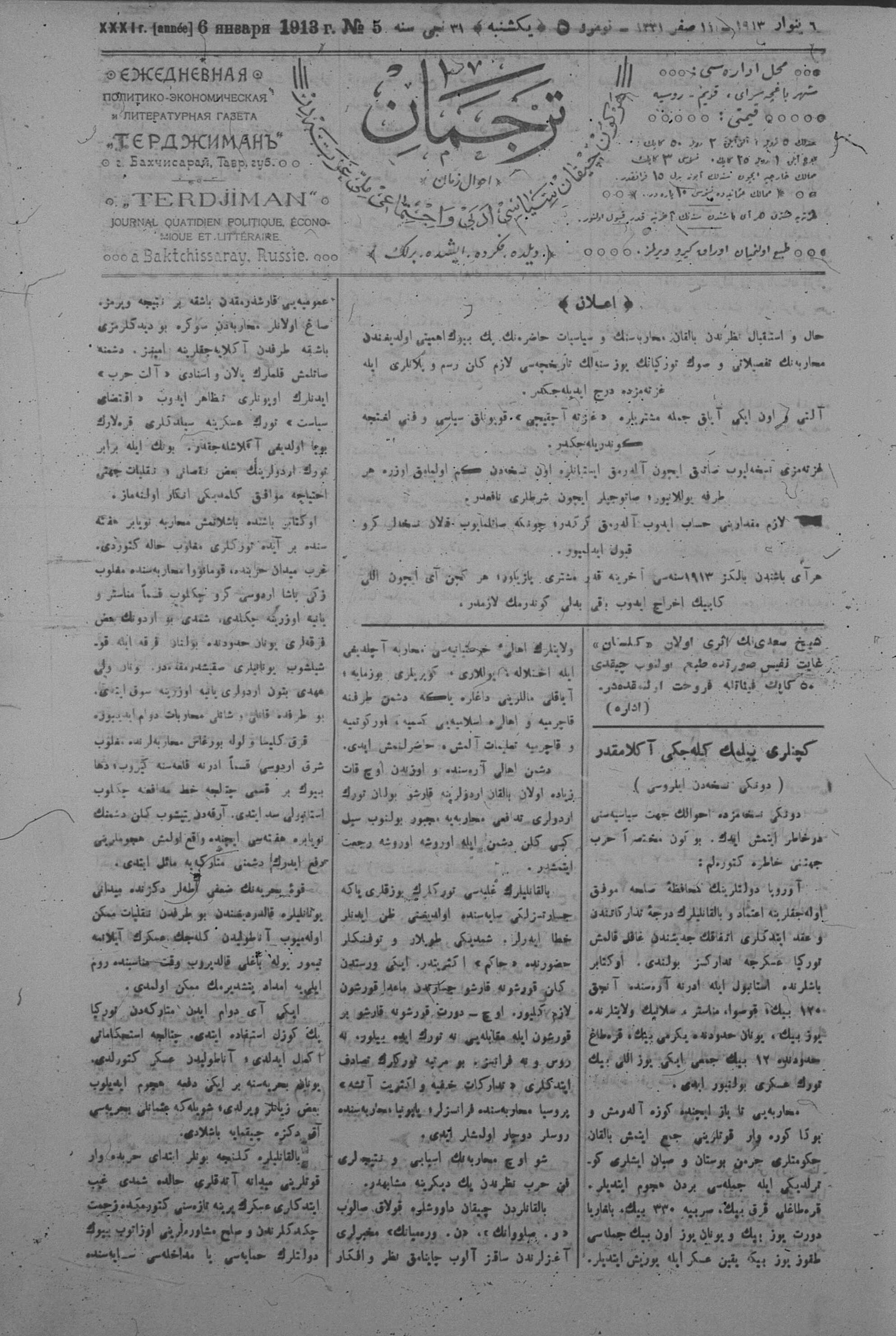 Tercüman, 06 January 1913 Year 31 No 5