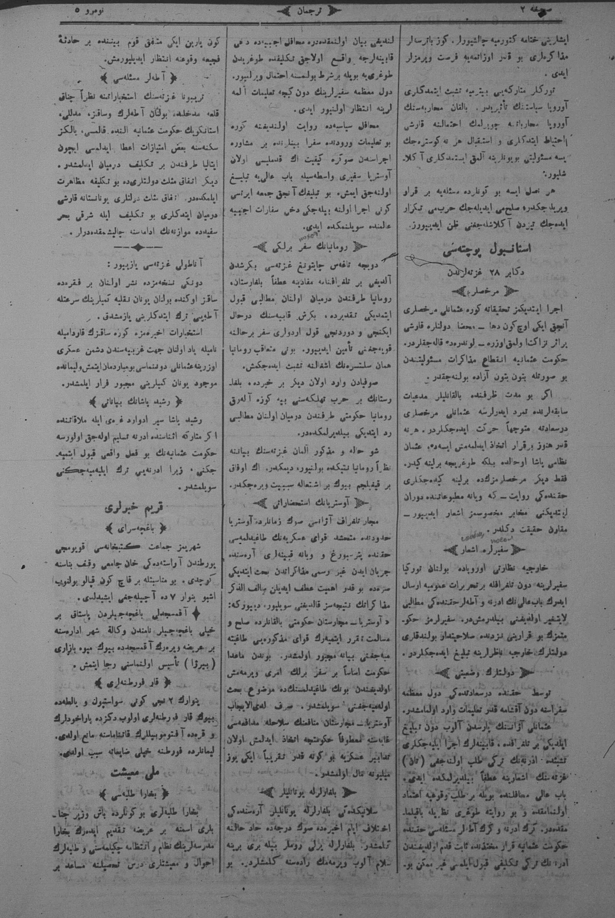 The name of the newspaper changed to Tercüman-ı Ahval-i Zaman in 1905. In 1909, it started to be published under its first name, Tercüman.