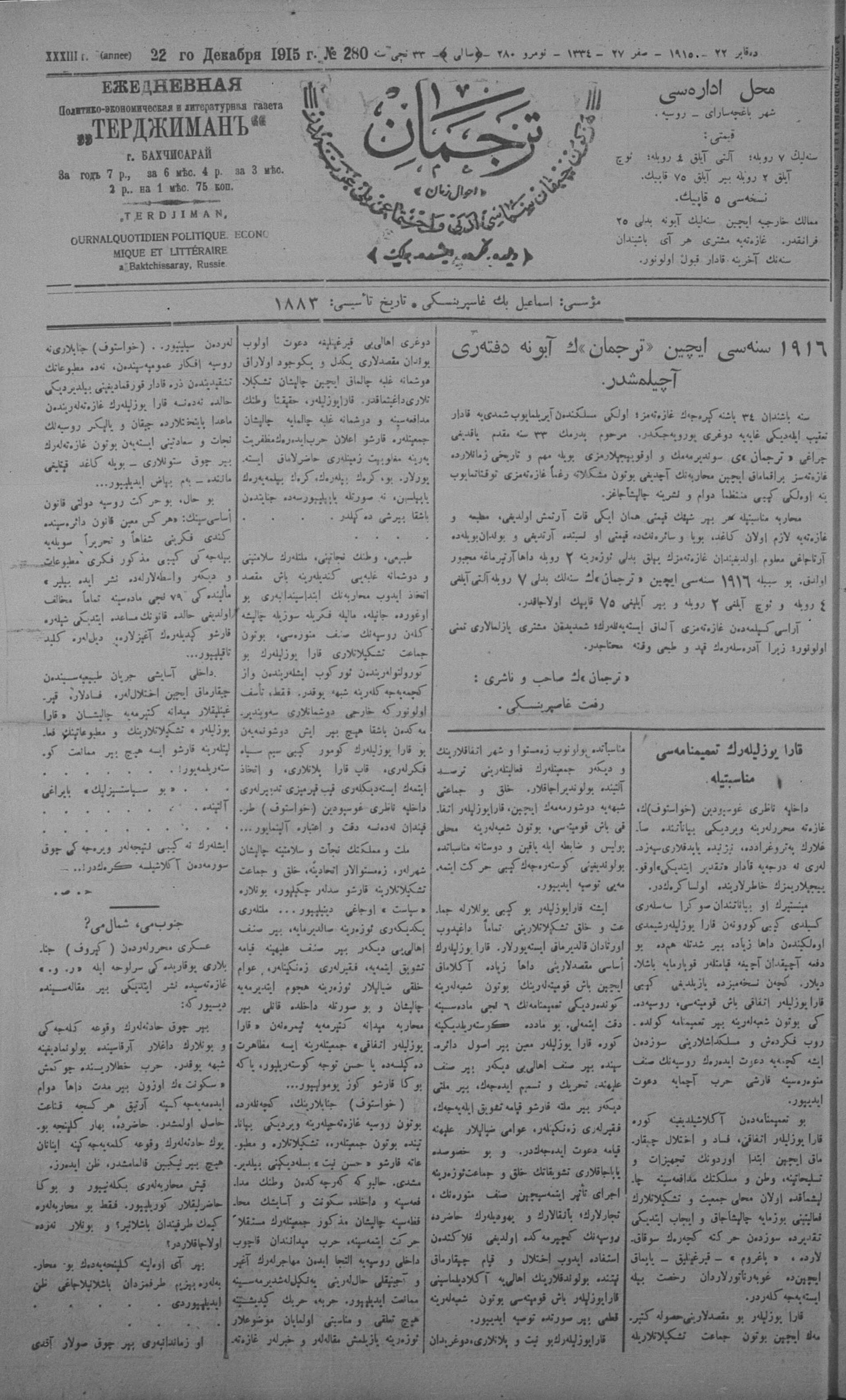Turkish-Russian newspaper published in Crimea by İsmail Gaspıralı.