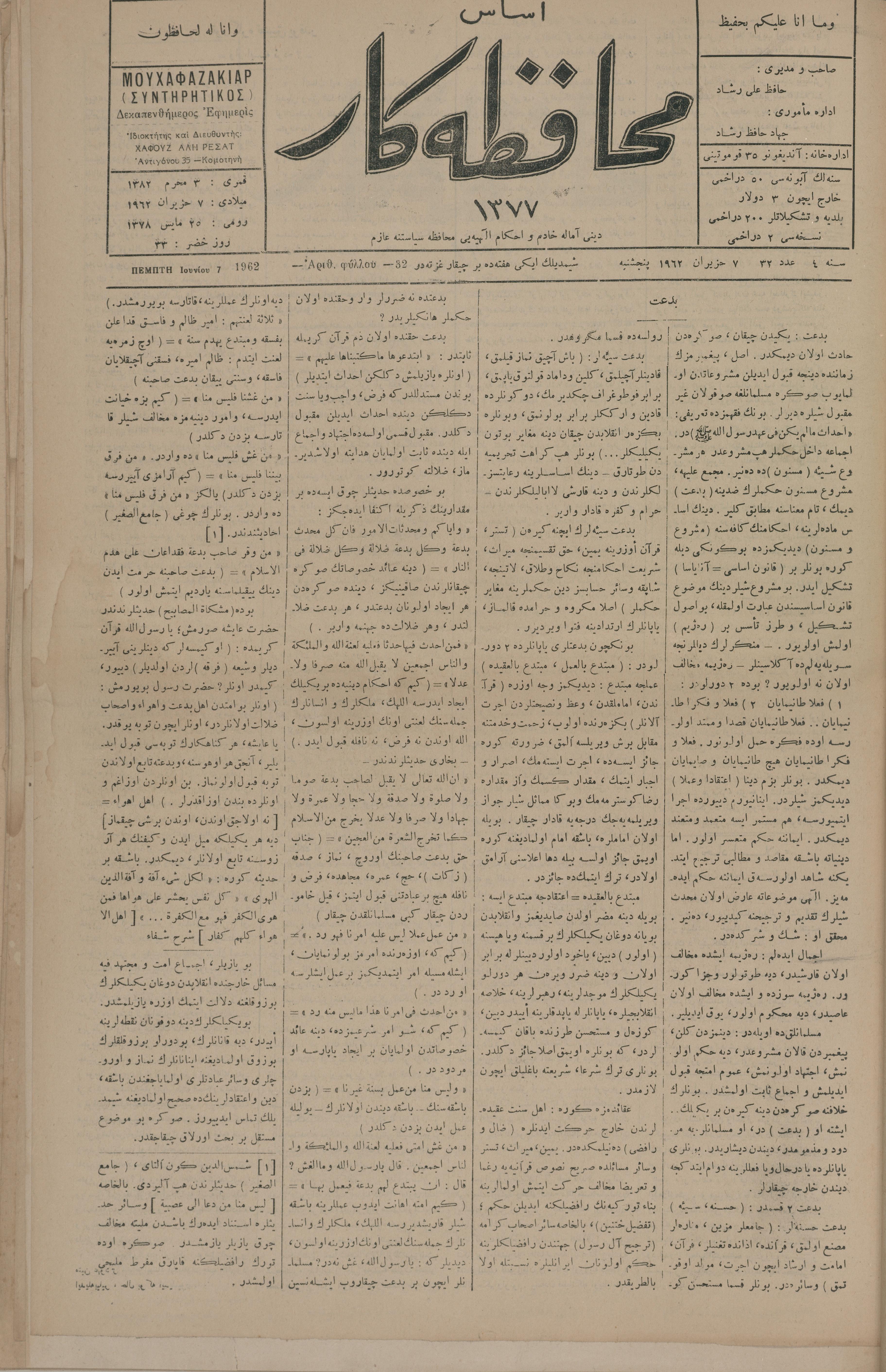 Esas muhafazakâr 1377, 7 Haziran 1962 Sene 4 Aded 32