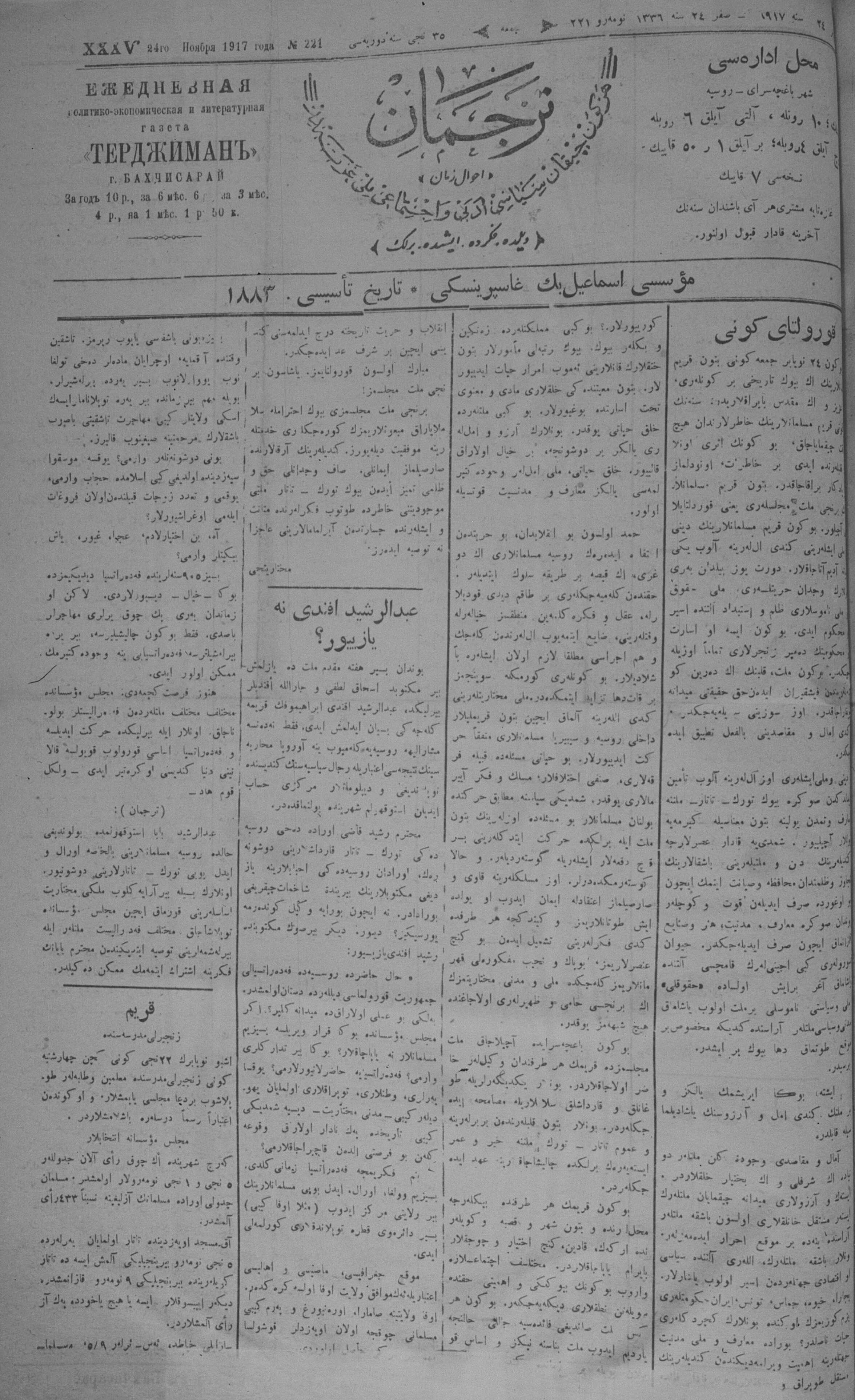 Tercüman, 24 November 1917 Year 35 No 221