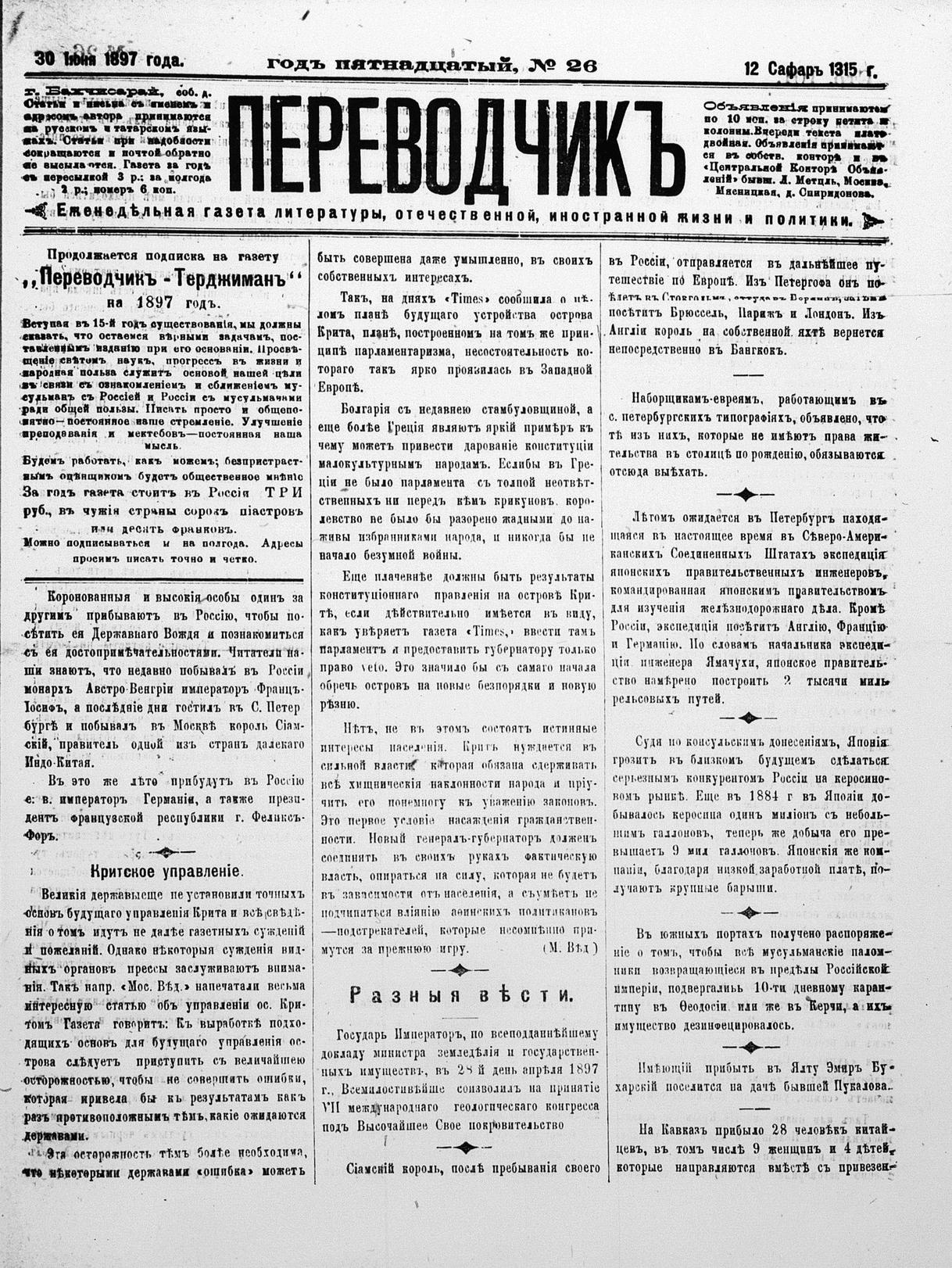 Tercüman, 30 June 1897 Year 15 No 26