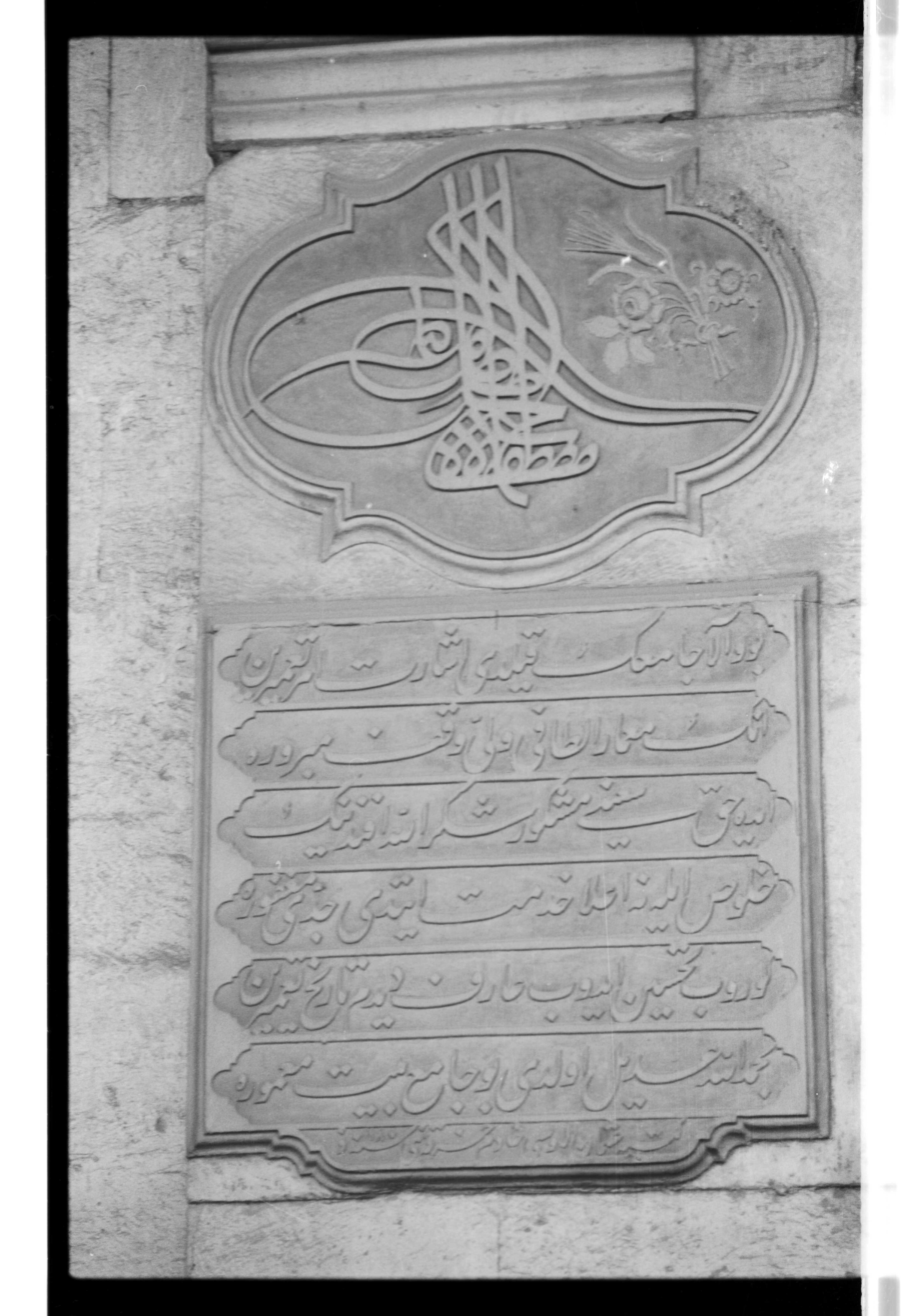 Nişancı Mehmed Paşa Camii'nin giriş kapısının solundaki kitabe