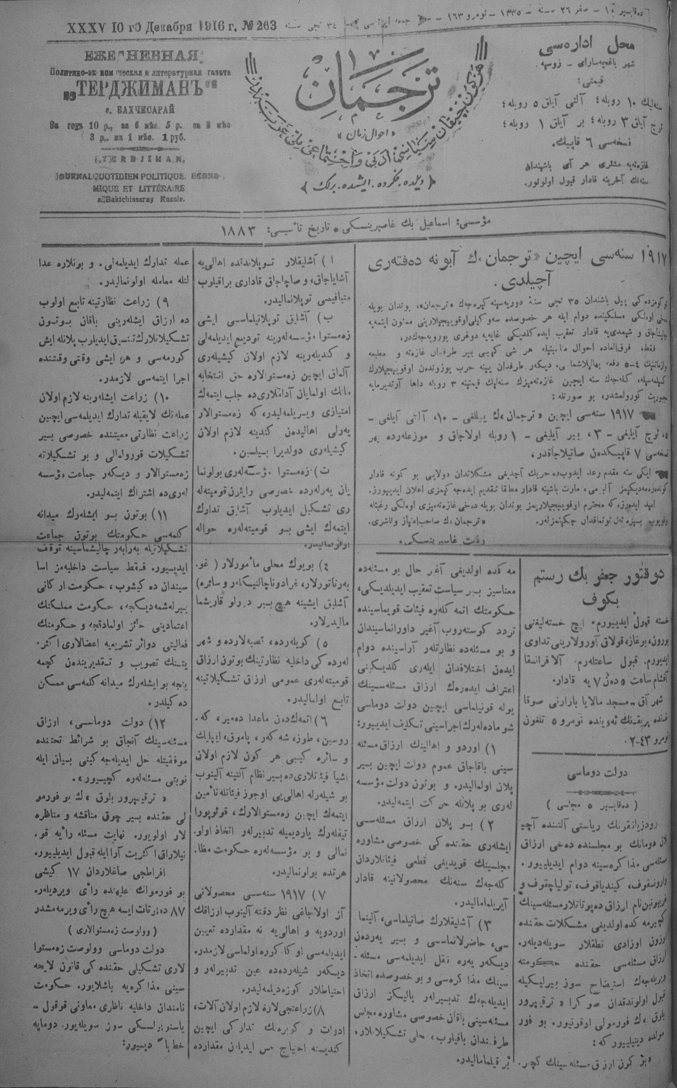 Tercüman, 10 December 1916 Year 34 No 263