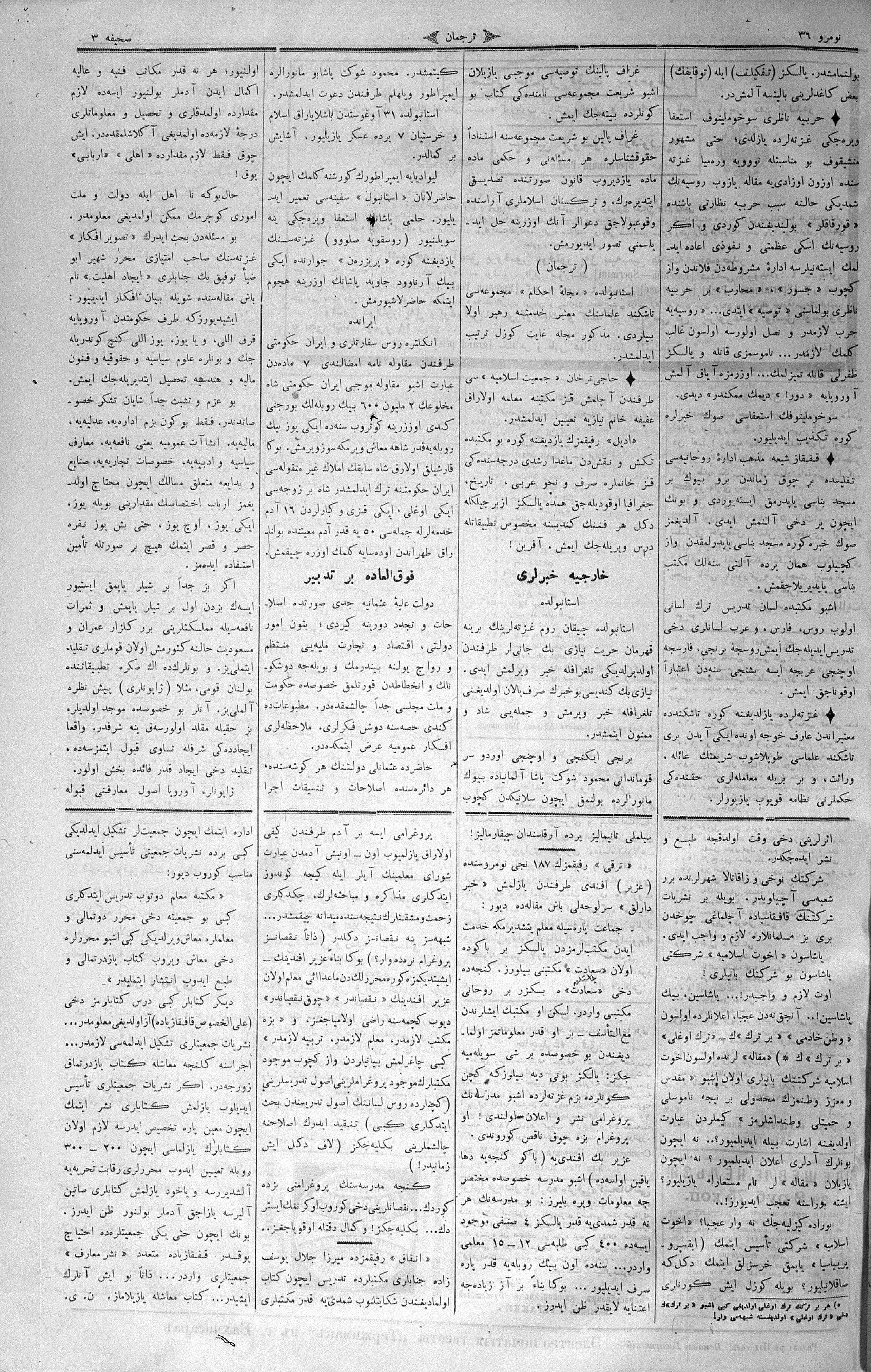 The name of the newspaper changed to Tercüman-ı Ahval-i Zaman in 1905. In 1909, it started to be published under its first name, Tercüman.