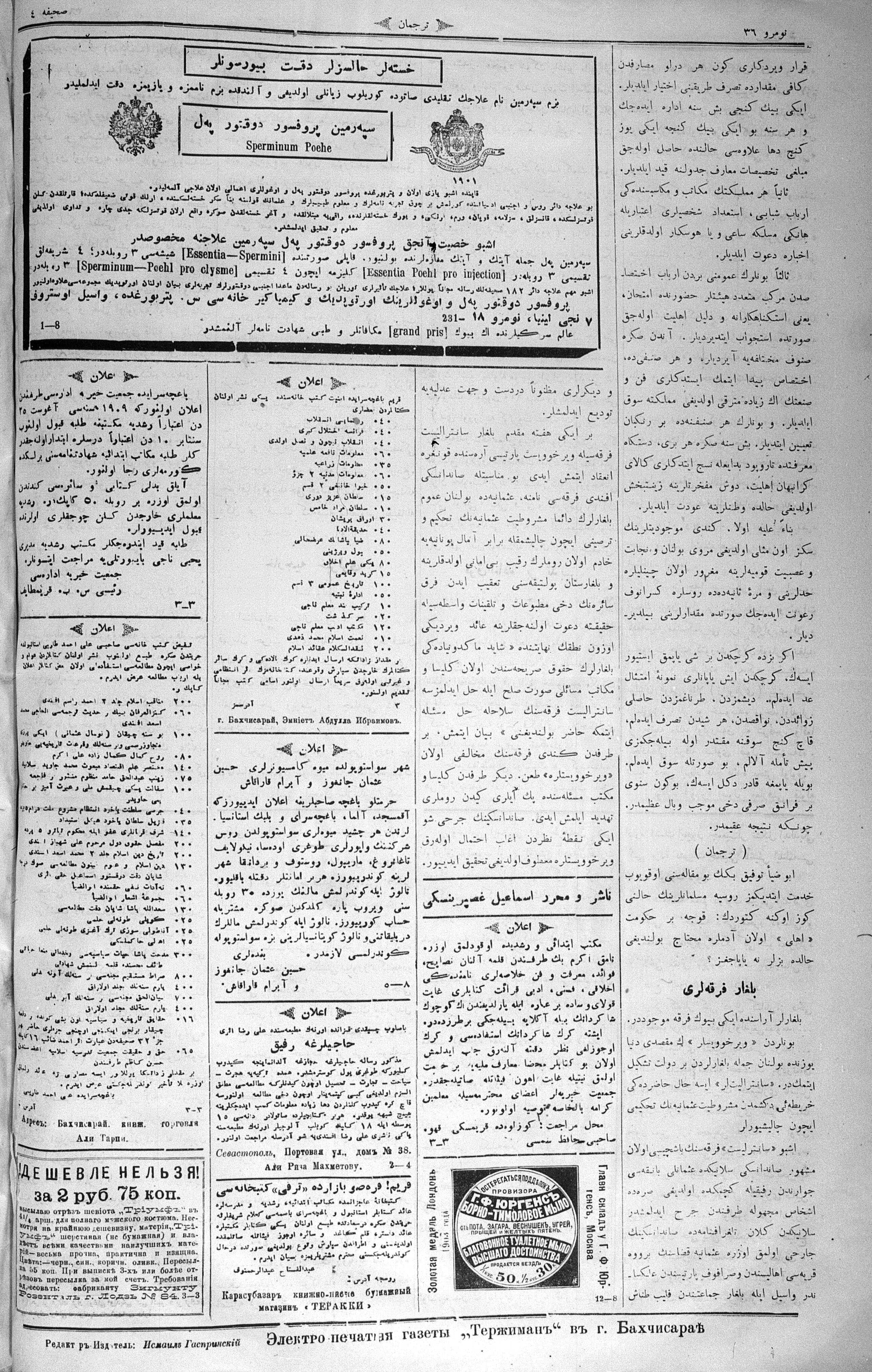 Turkish-Russian newspaper published in Crimea by İsmail Gaspıralı.