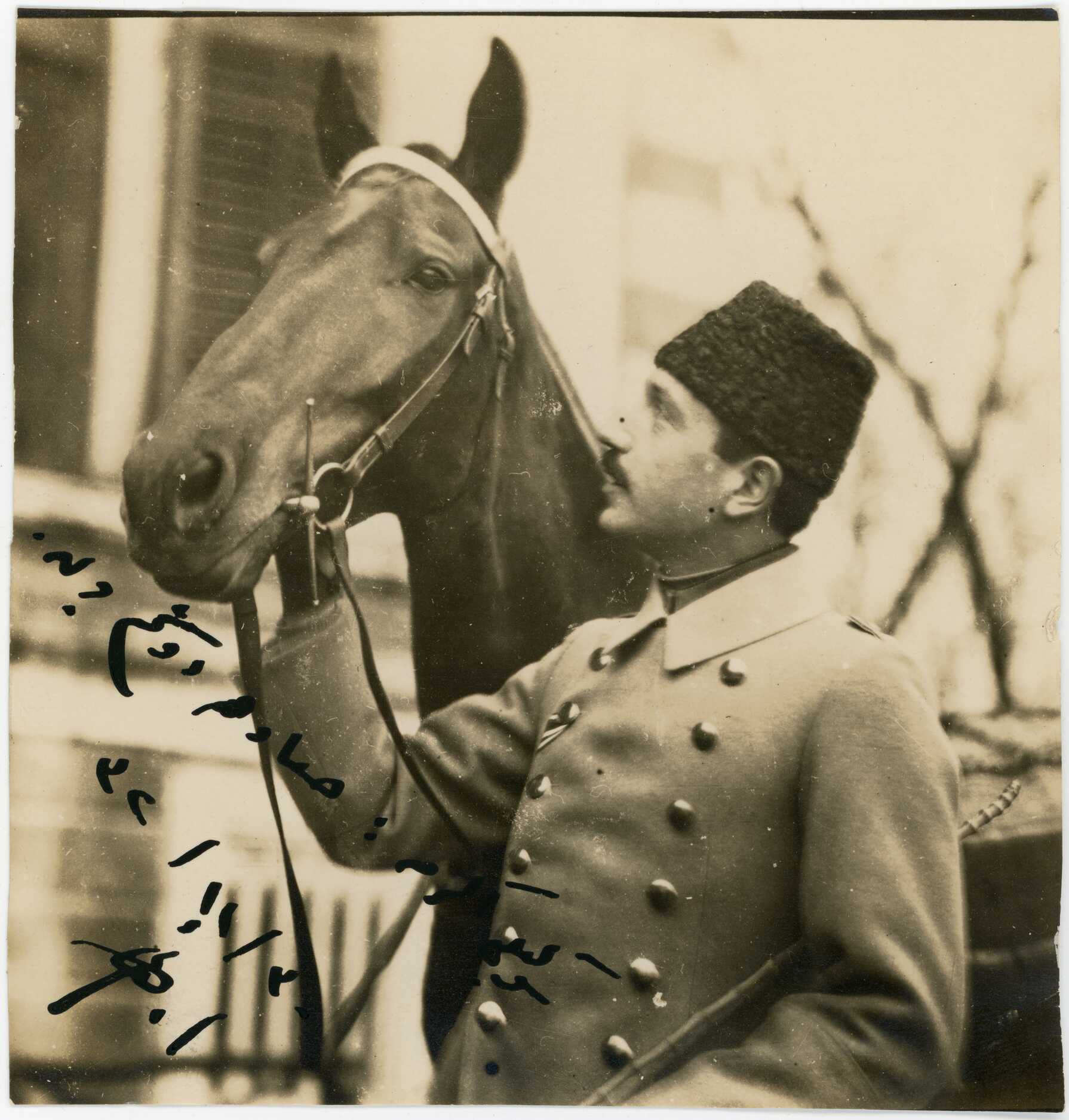 Saim Önhon wrote the following to Ekrem Rüştü Akömer in Ottoman Turkish: "Sevgili Ekrem'e, sadık dostum ve ben"