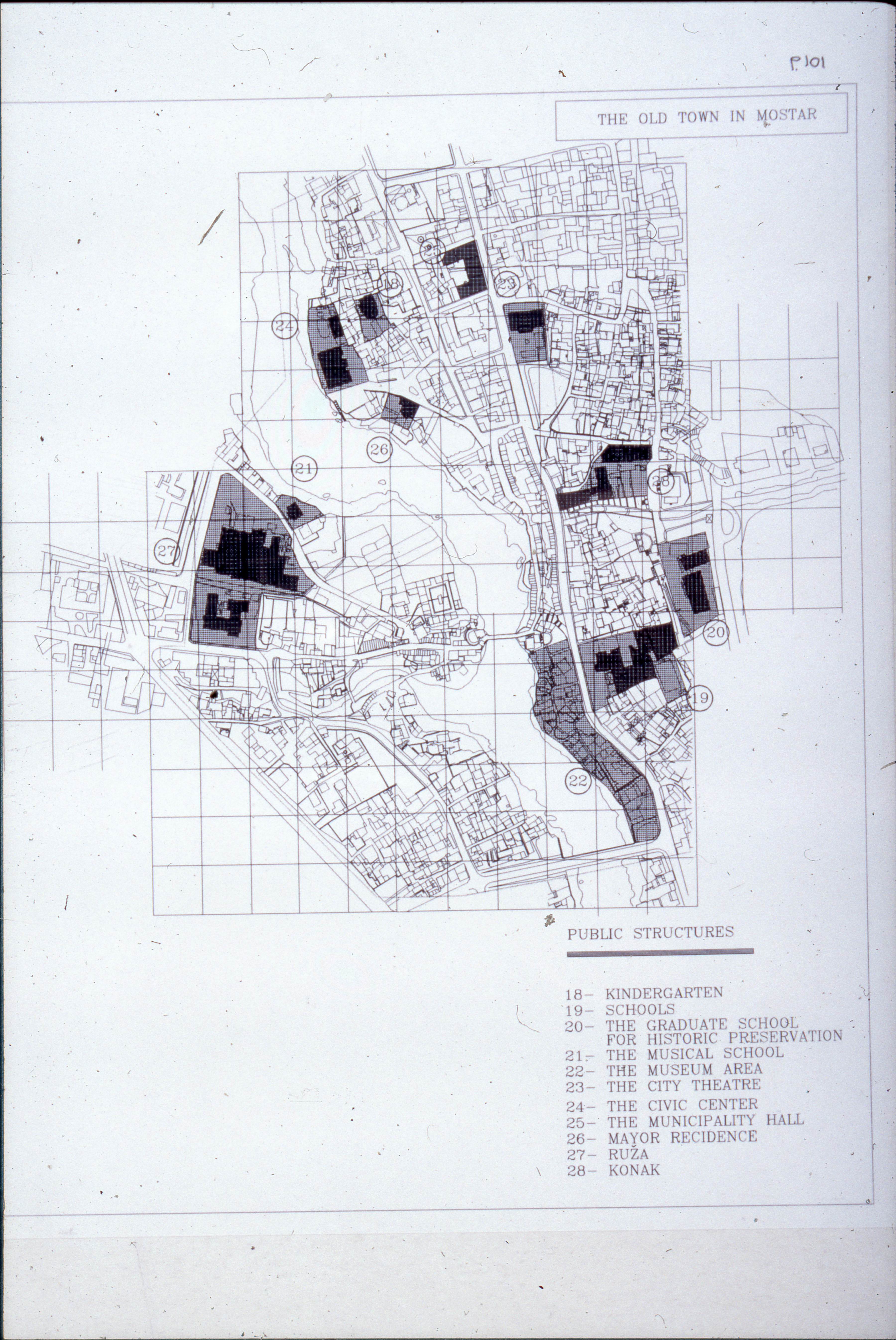 Public structures of the Old Town in Mostar