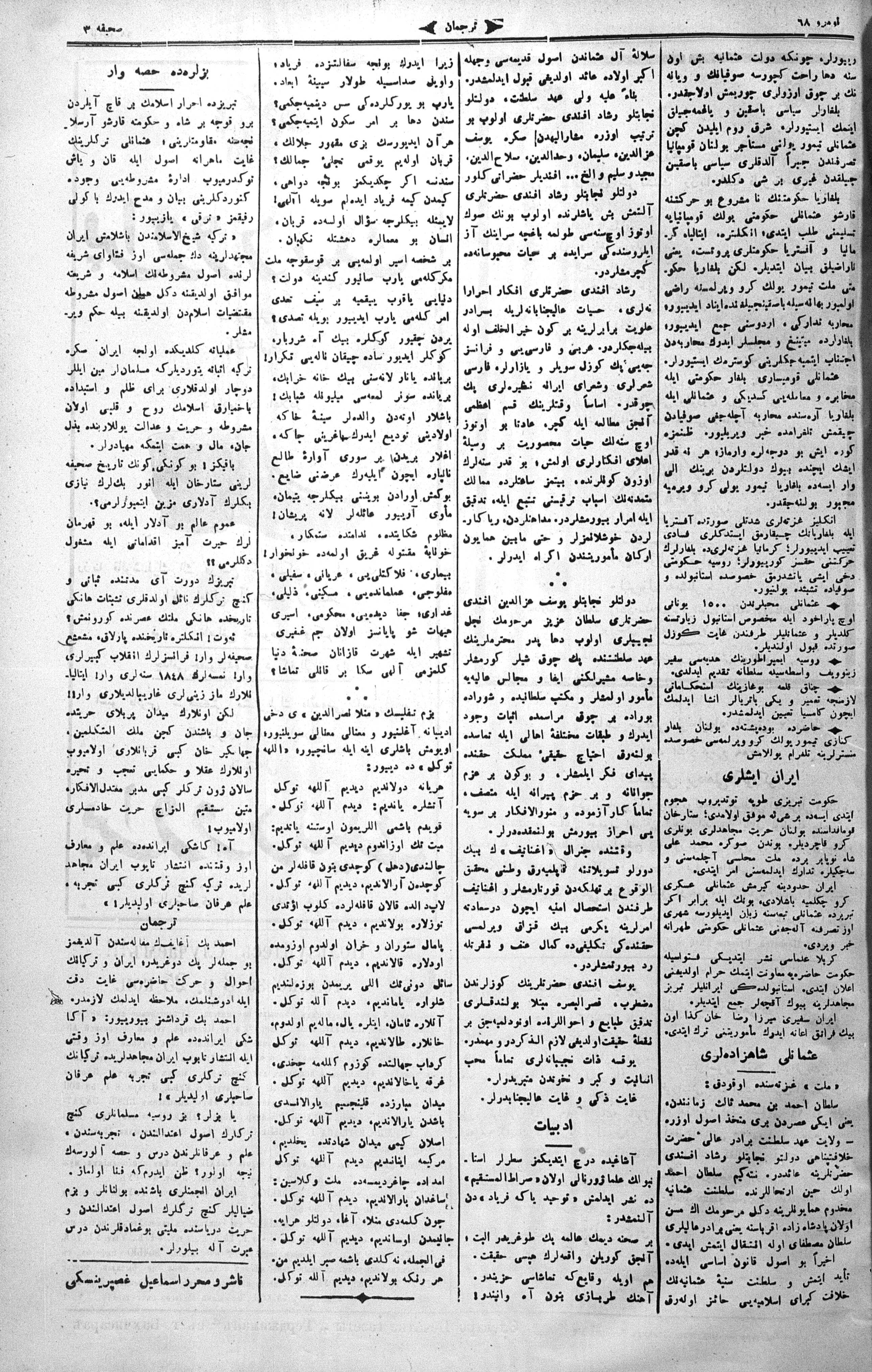 The name of the newspaper changed to Tercüman-ı Ahval-i Zaman in 1905. In 1909, it started to be published under its first name, Tercüman.