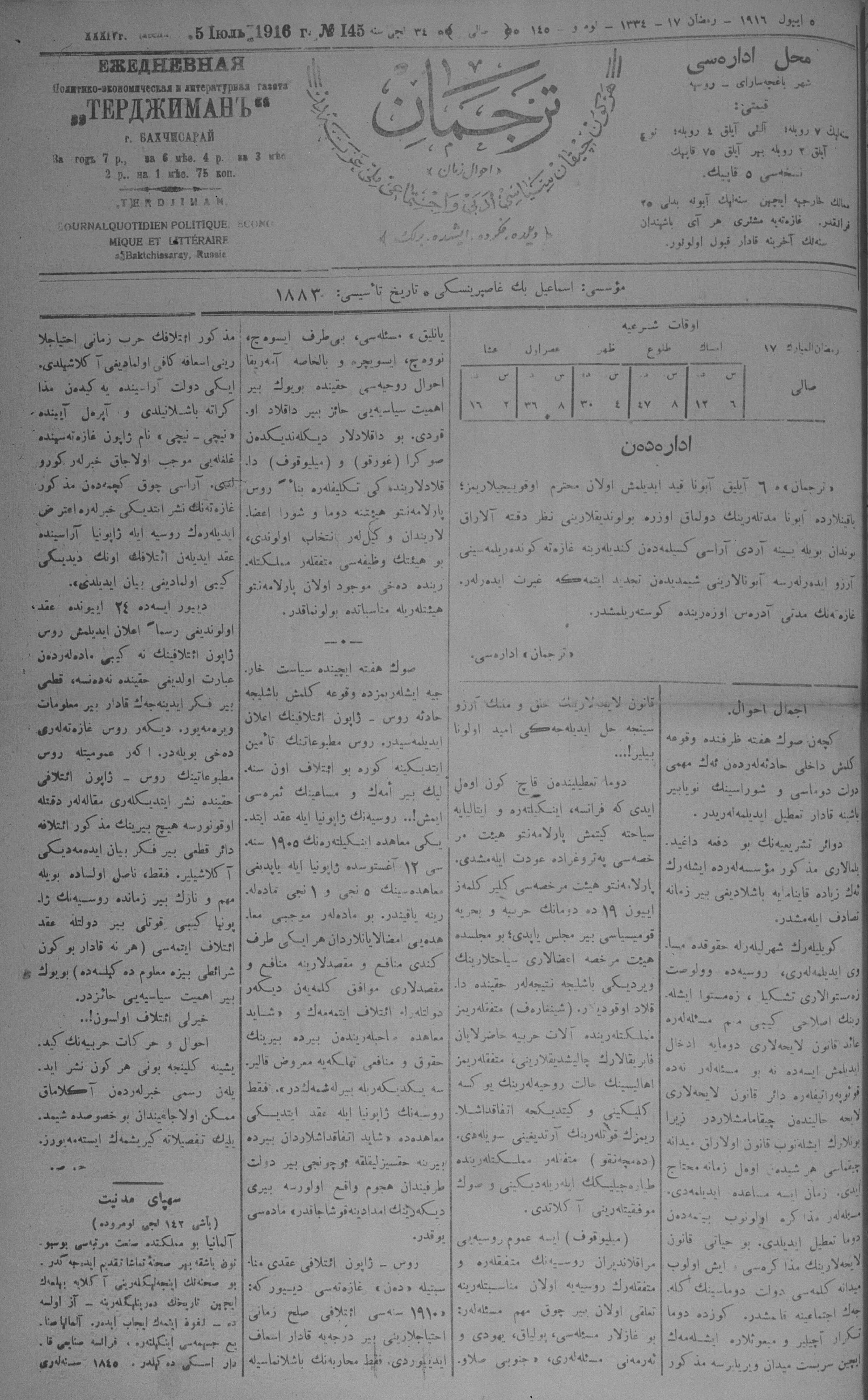 Turkish-Russian newspaper published in Crimea by İsmail Gaspıralı.