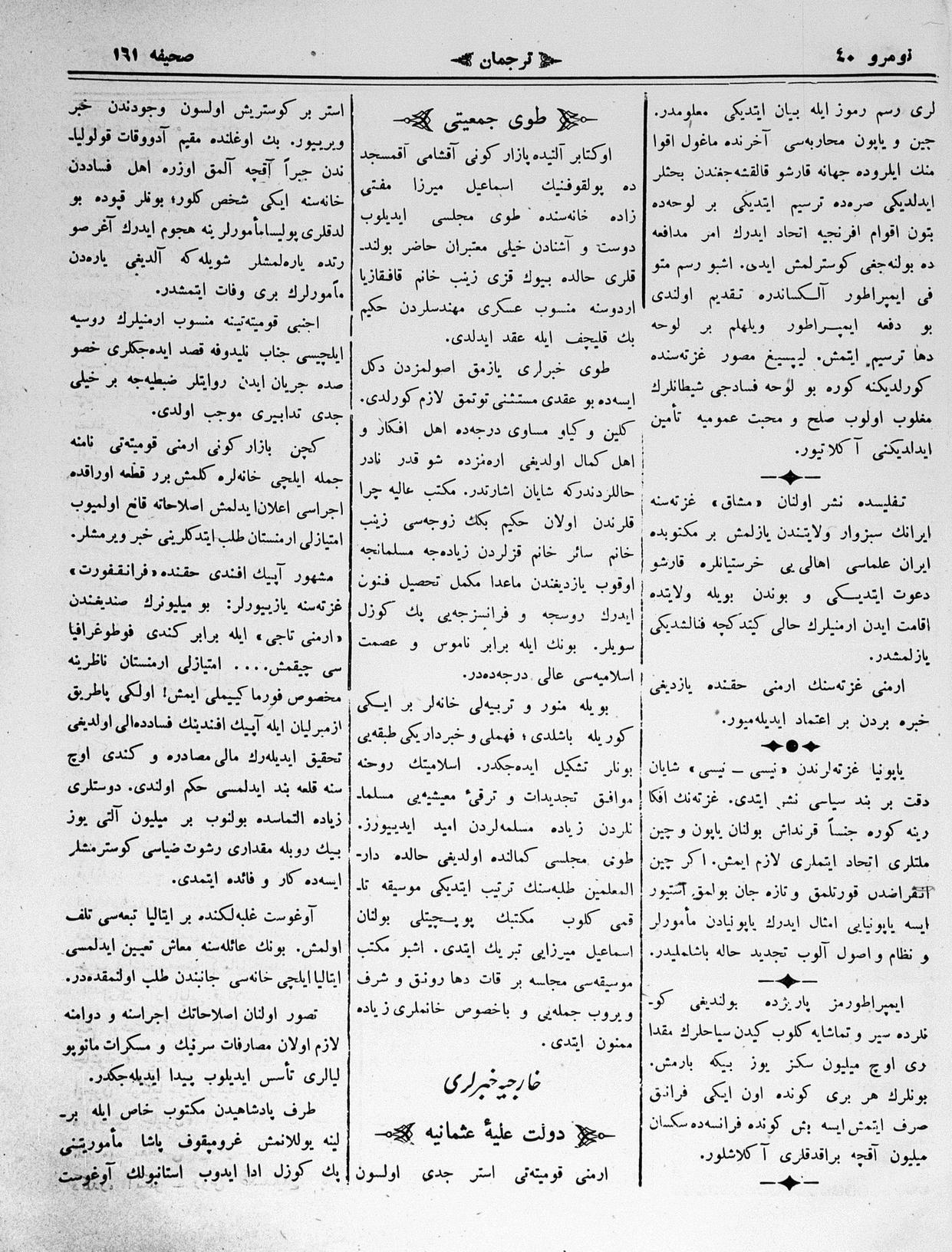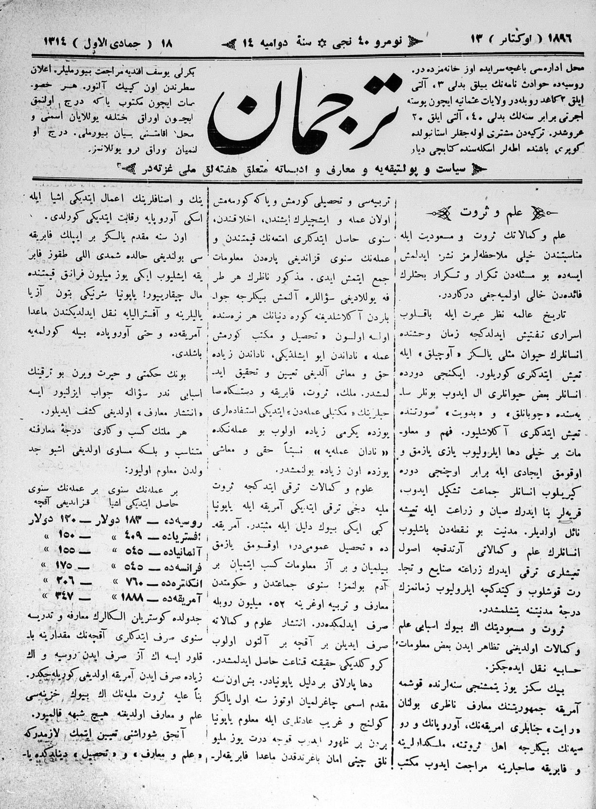 The name of the newspaper changed to Tercüman-ı Ahval-i Zaman in 1905. In 1909, it started to be published under its first name, Tercüman.