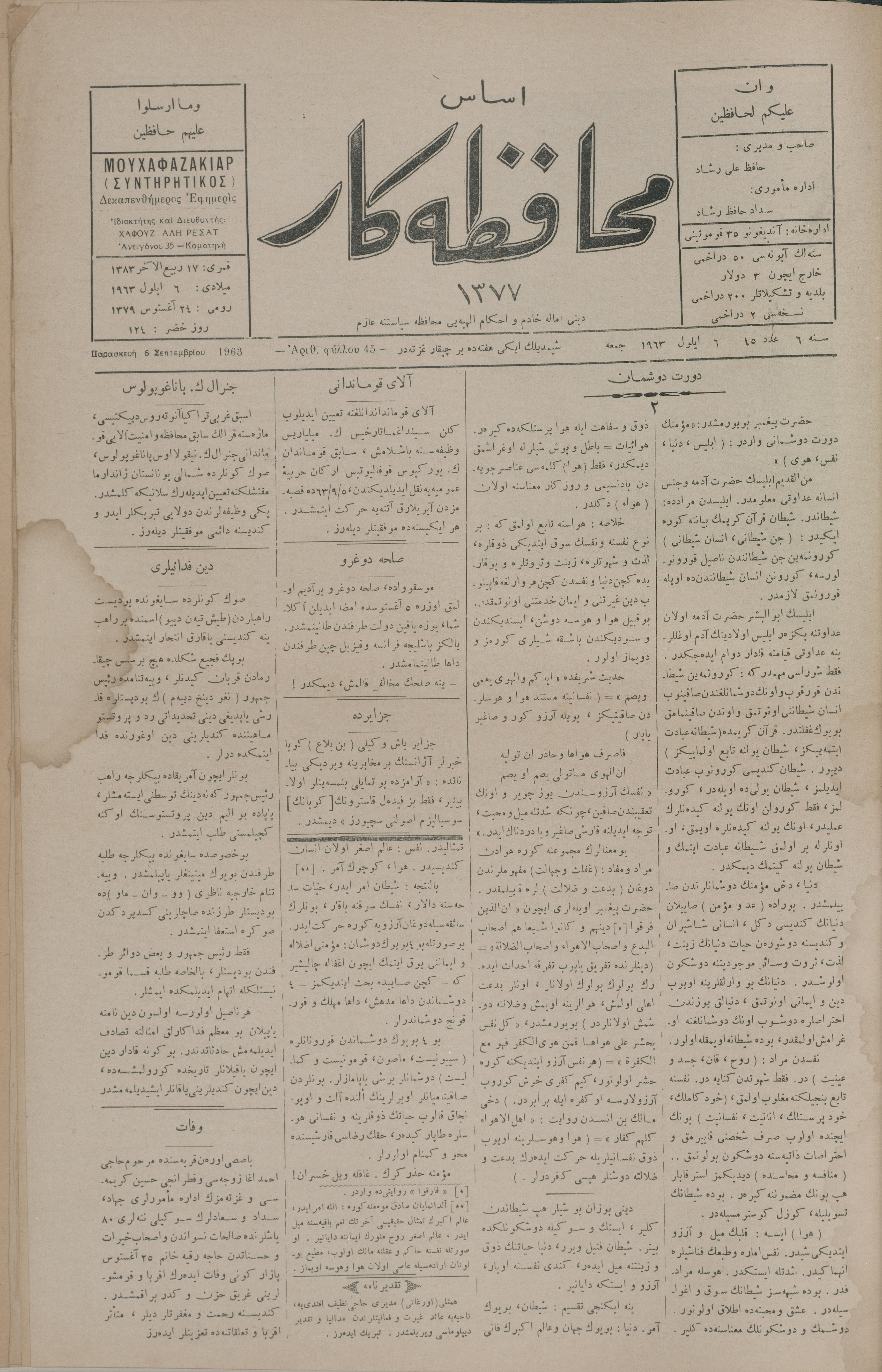 Esas muhafazakâr 1377, 6 Eylül 1963 Sene 6 Aded 45